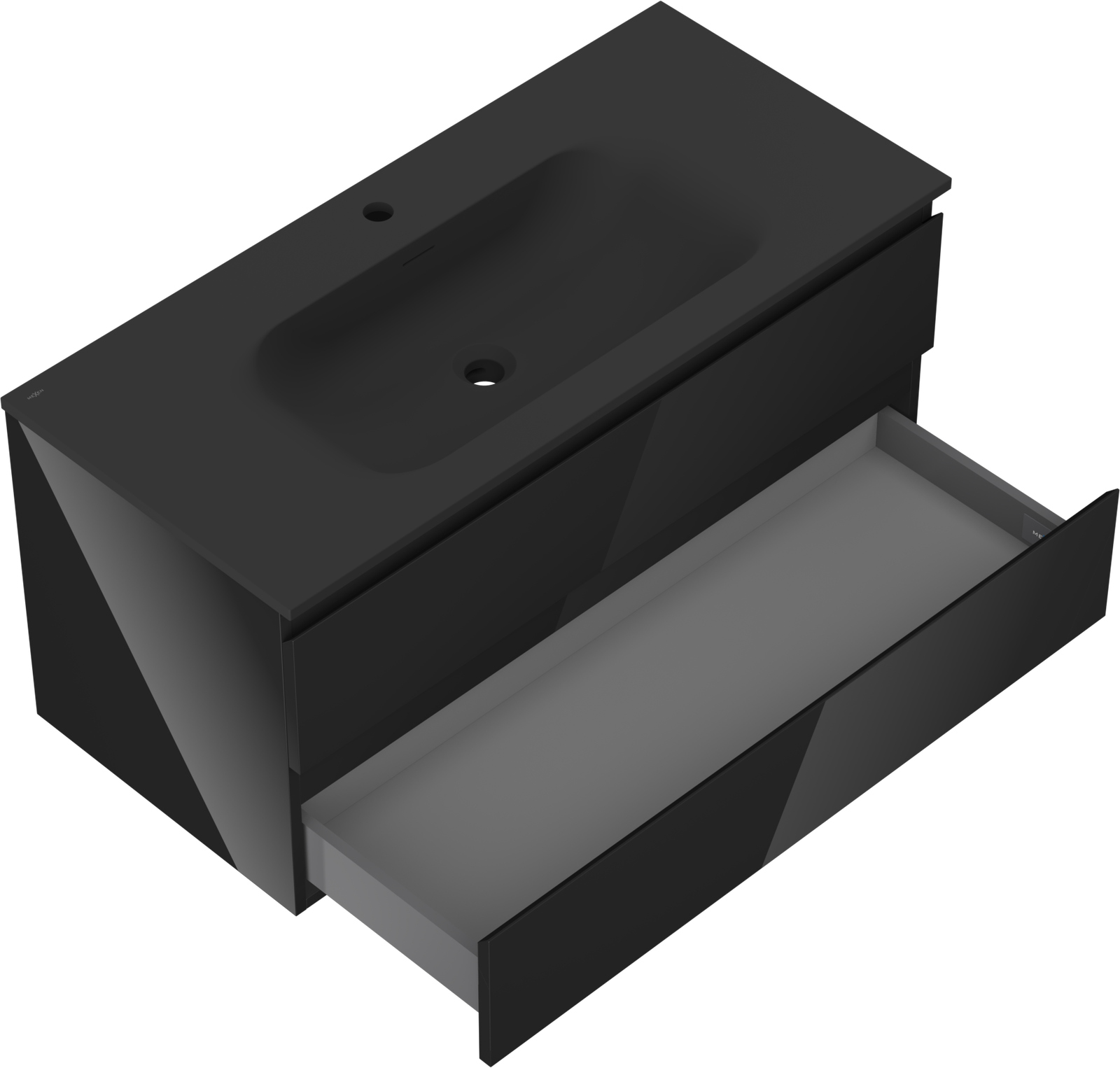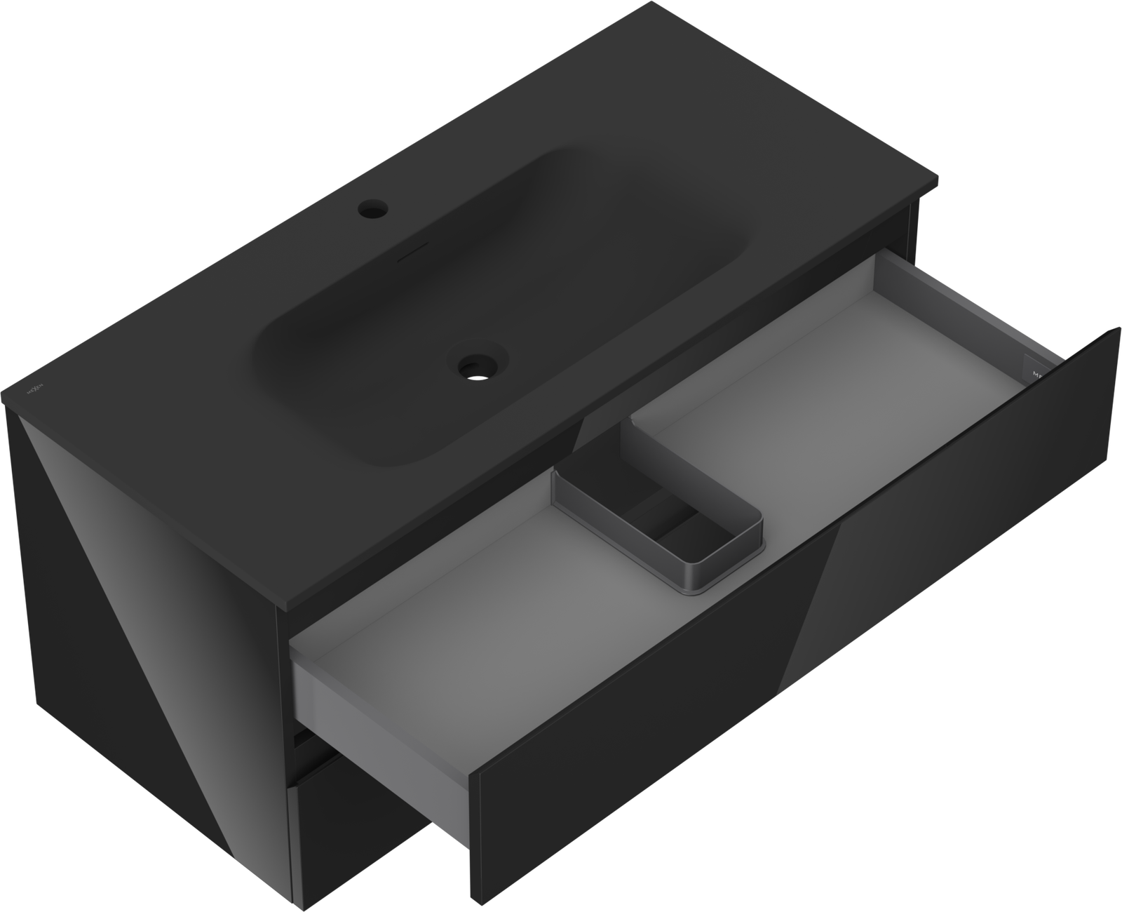 Mexen Orio vannas istabas skapis 100 cm ar izlietni Vela, 2 atvilktnes, melns spīdums/melns mats - 91A10-10047-2-BFF70-W23M71