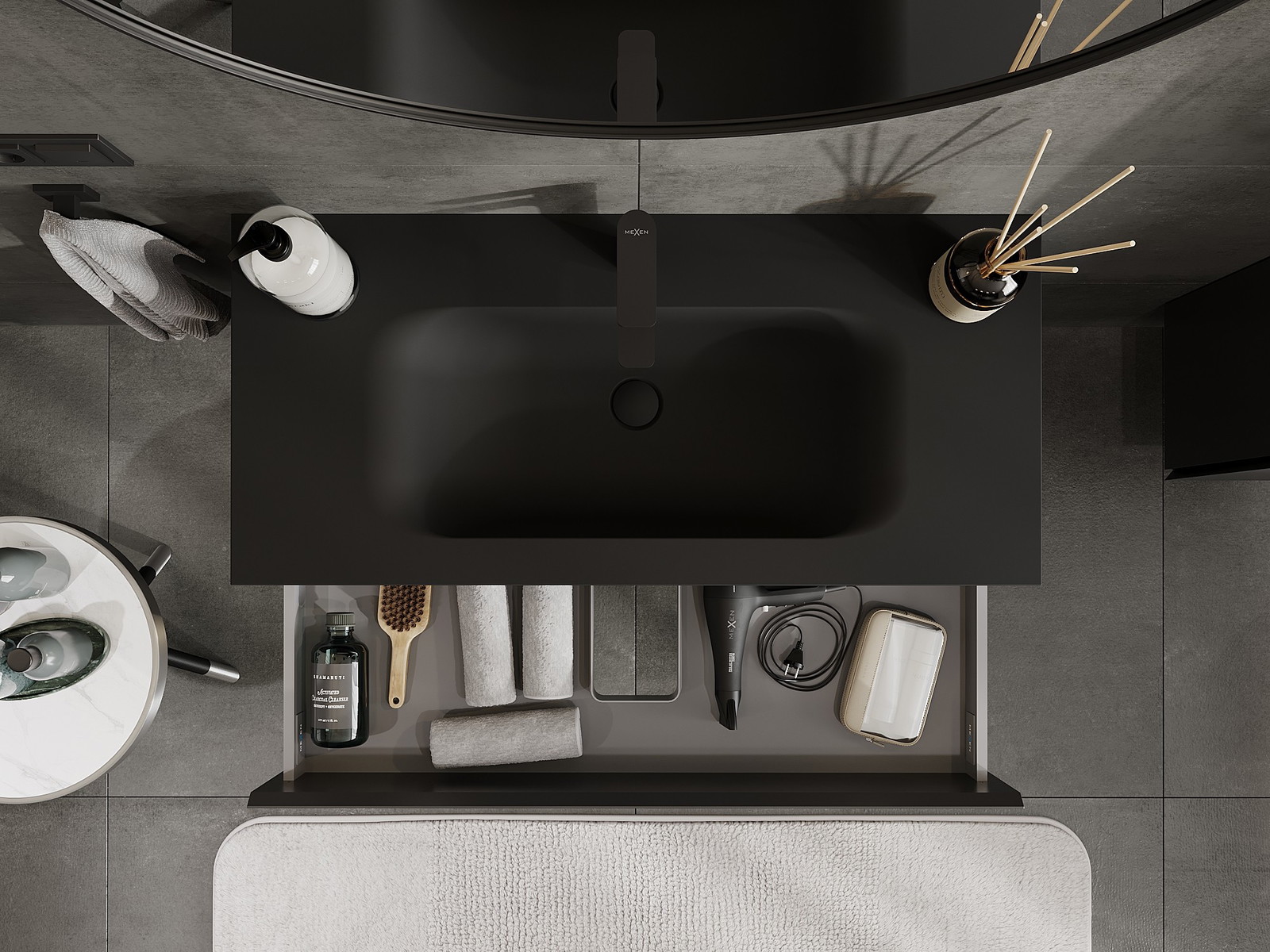 Izgriezums atvilktnē ir veidots tā, lai tajā varētu ietilpt sifons, kas ir nepieciešams izlietņu uzstādīšanā. Pateicoties tam, mēbele var tikt pilnībā funkcionāli uzstādīta, neatstājot ievērojamu vietu atvilktnē instalācijai.
