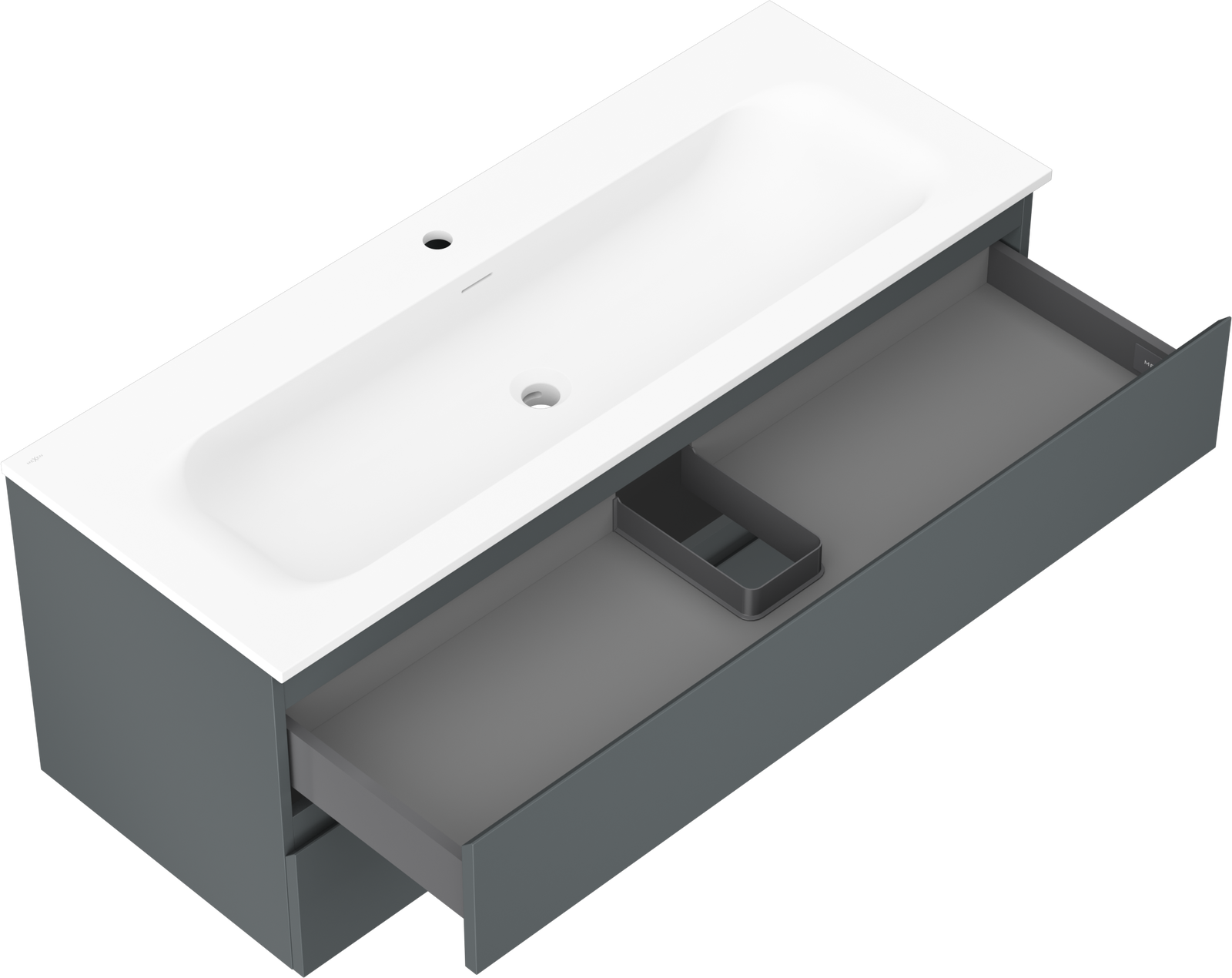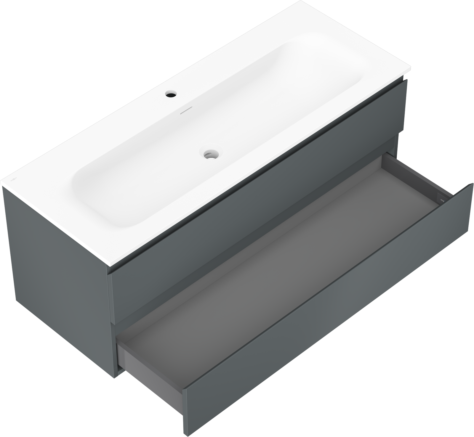 Mexen Orio 120 cm vannas istabas skapis ar izlietni Vela, 2 atvilktnes, grafīta matēts/balts matēts - 91A10-12047-2-BFF66-W23M01