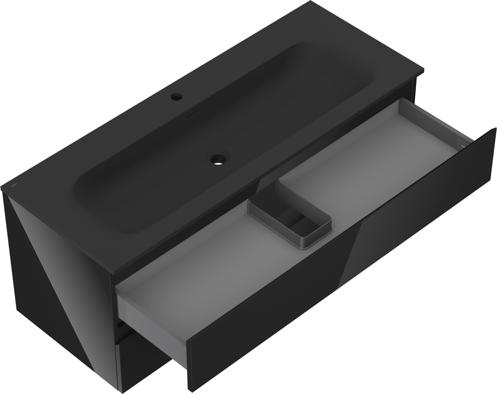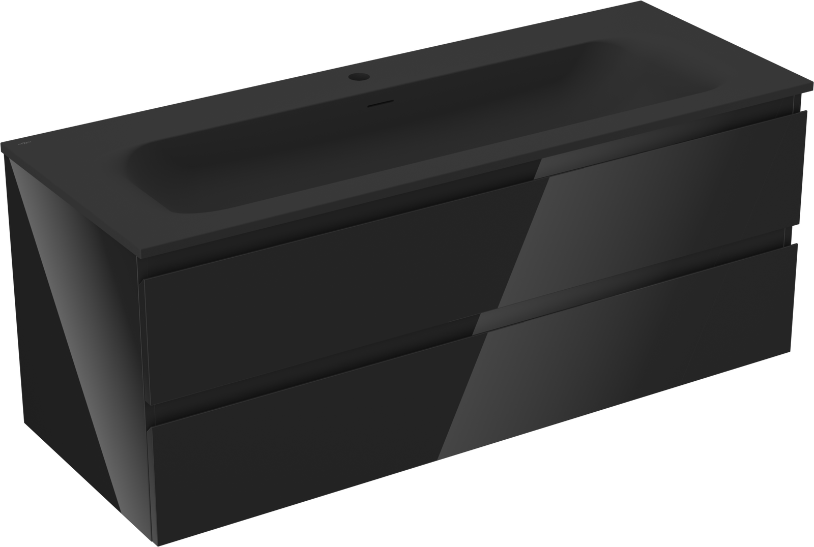 Mexen Orio vannas istabas skapis 120 cm ar izlietni Vela, 2 atvilktnes, melns spīdīgs/melns matēts - 91A10-12047-2-BFF70-W23M71