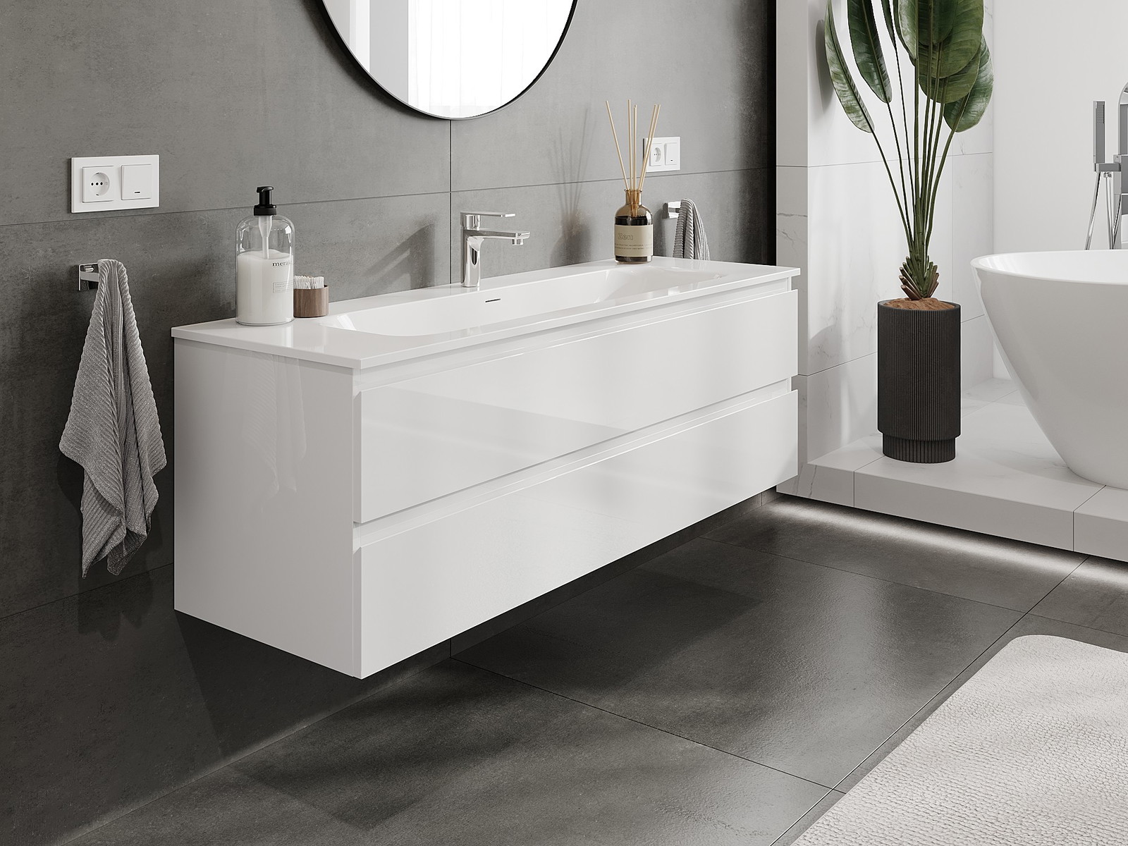 Mūsu modulārās vannas istabas mēbeles var savstarpēji kombinēt dažādās krāsu konfigurācijās, ļaujot pilnīgu personalizāciju. Var izvēlēties gan izskatu, gan atsevišķu elementu funkcijas, kas ļauj pielāgot mēbeles savām stilistiskajām un lietotāju vēlmēm.