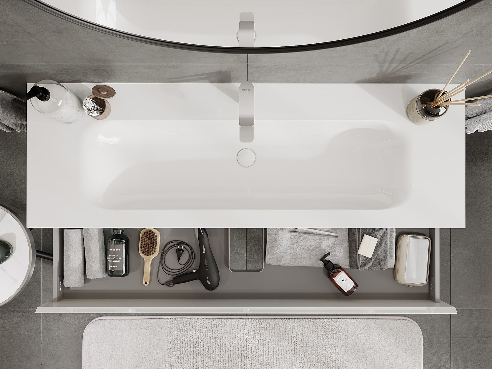 Mexen Orio vannas istabas skapītis 140 cm ar izlietni Vela, 2 atvilktnes, balts spīdums - 91A10-14047-2-BFF00-W23M00