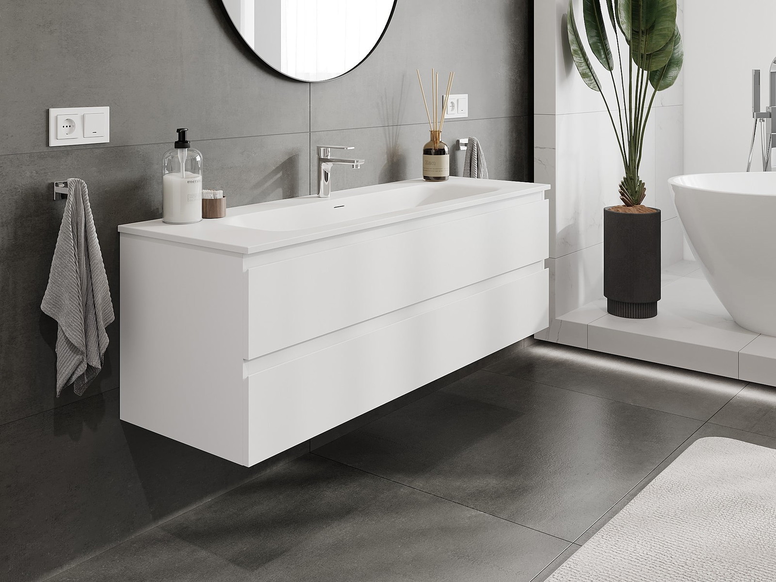 Mūsu modulārās vannas istabas mēbeles var savstarpēji kombinēt dažādās krāsu konfigurācijās, ļaujot pilnīgu personalizāciju. Var izvēlēties gan izskatu, gan atsevišķu elementu funkcijas, kas ļauj pielāgot mēbeles savām stilistiskajām un lietotāju vēlmēm.