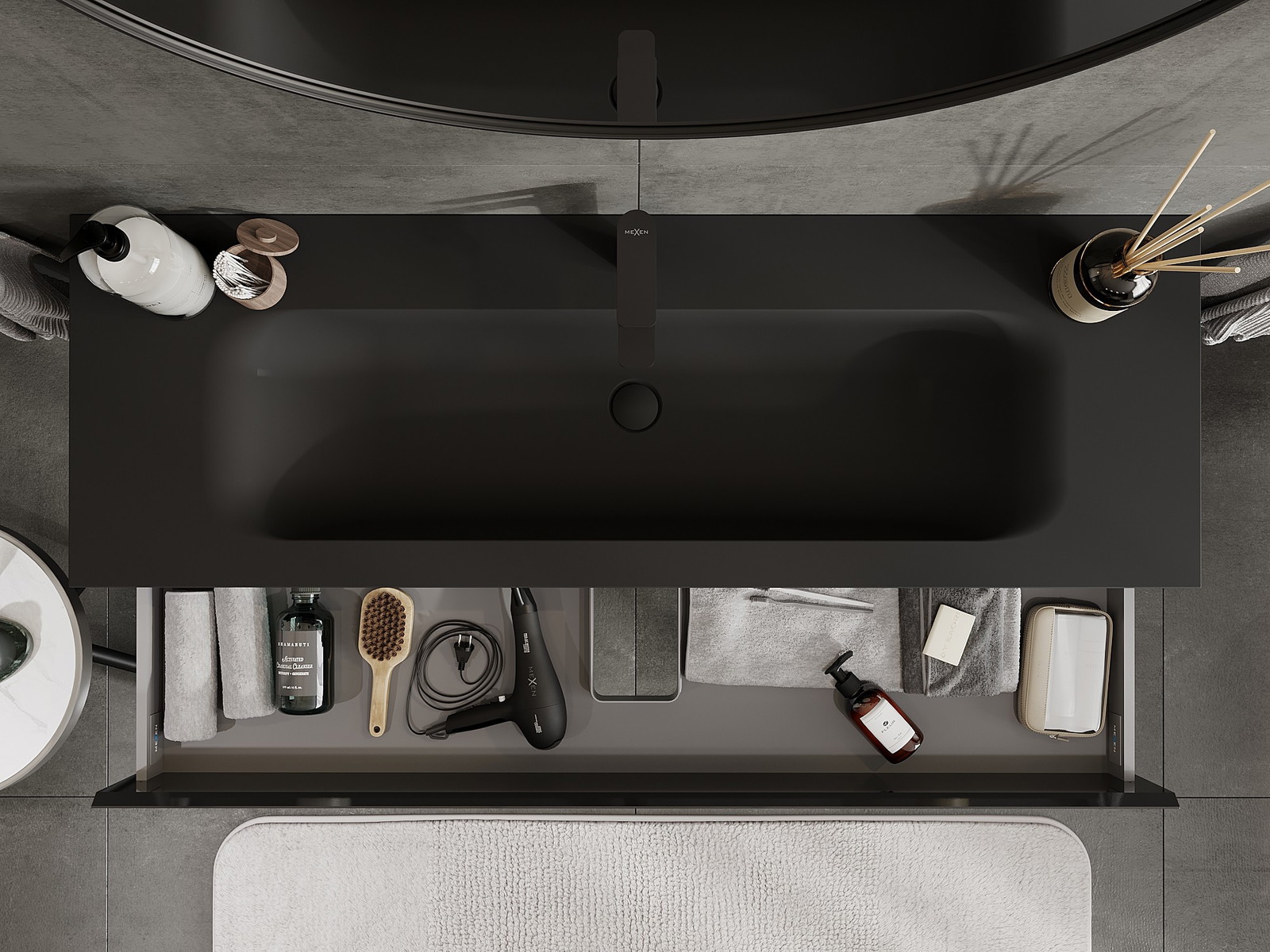 Izgriezums atvilktnē ir veidots tā, lai tajā varētu ietilpt sifons, kas ir nepieciešams izlietņu uzstādīšanā. Pateicoties tam, mēbele var tikt pilnībā funkcionāli uzstādīta, neatstājot ievērojamu vietu atvilktnē instalācijai.