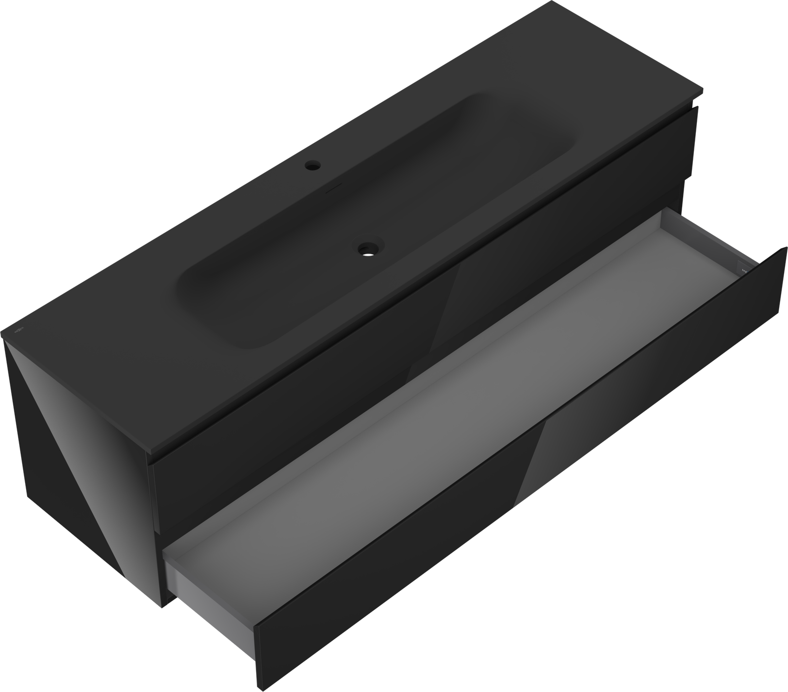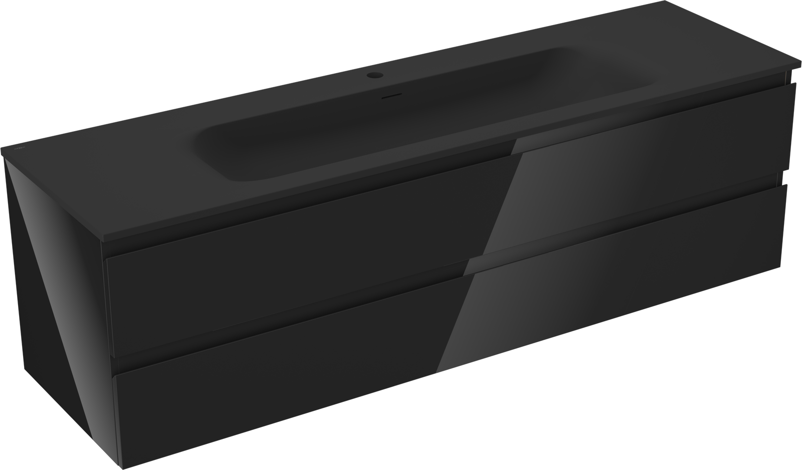Mexen Orio 160 cm vannas istabas skapis ar izlietni Vela, 2 atvilktnes, melns spīdīgs/melns matēts - 91A10-16047-2-BFF70-W23M71