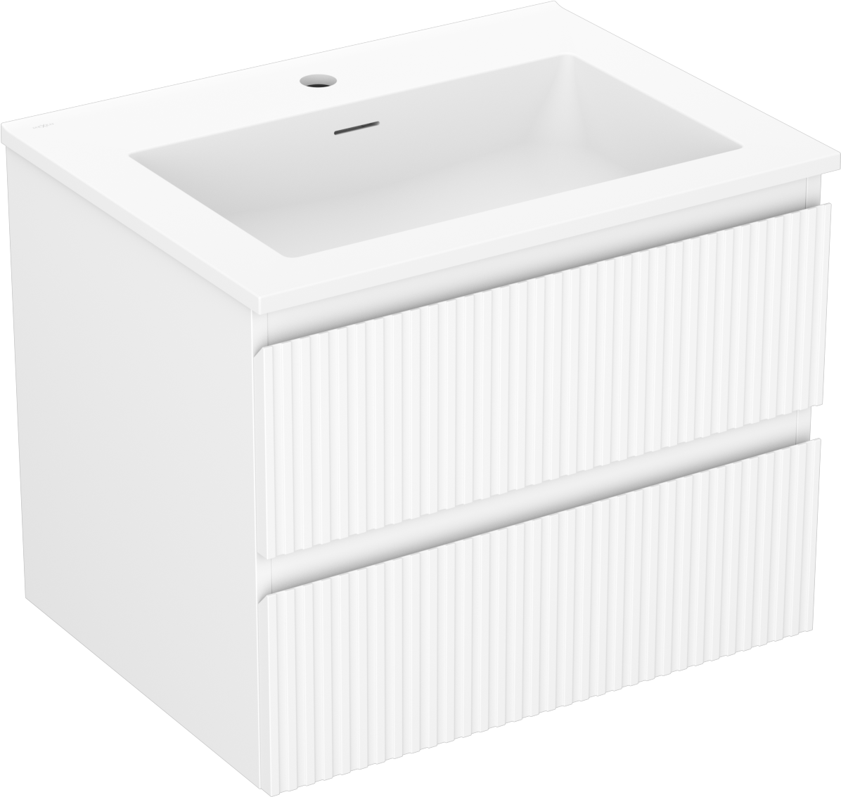 Mexen Rivel vannas istabas skapis 60 cm ar izlietni Otis, 2 atvilktnes, rievots, balts mats - 91A20-06047-2-BFF01-W18M01