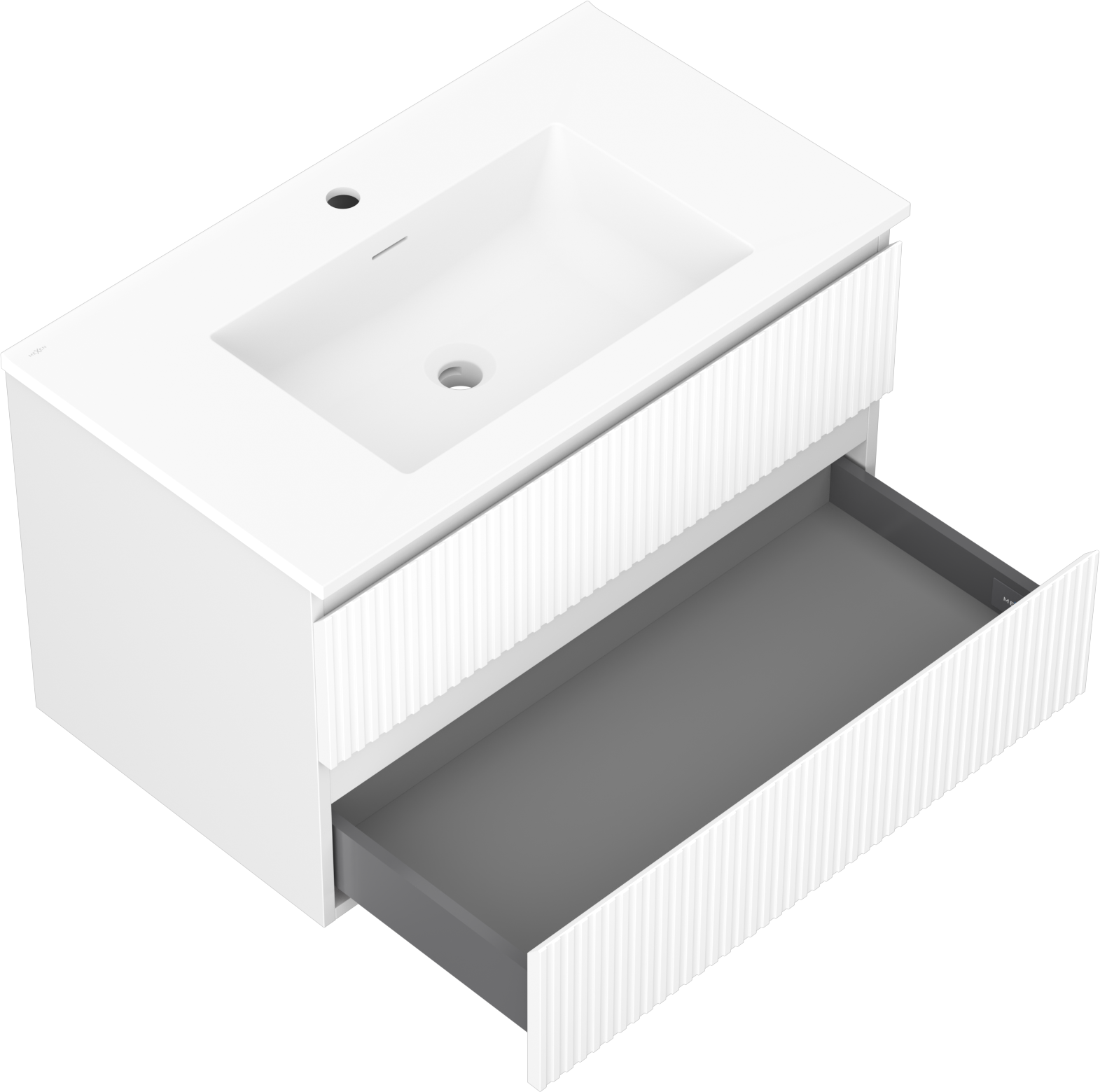 Mexen Rivel 80 cm vannas istabas skapītis ar izlietni Otis, 2 atvilktnes, rievots, balts mats - 91A20-08047-2-BFF01-W18M01