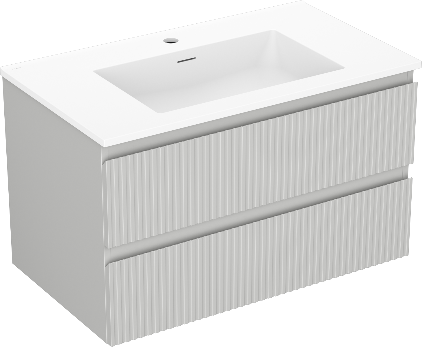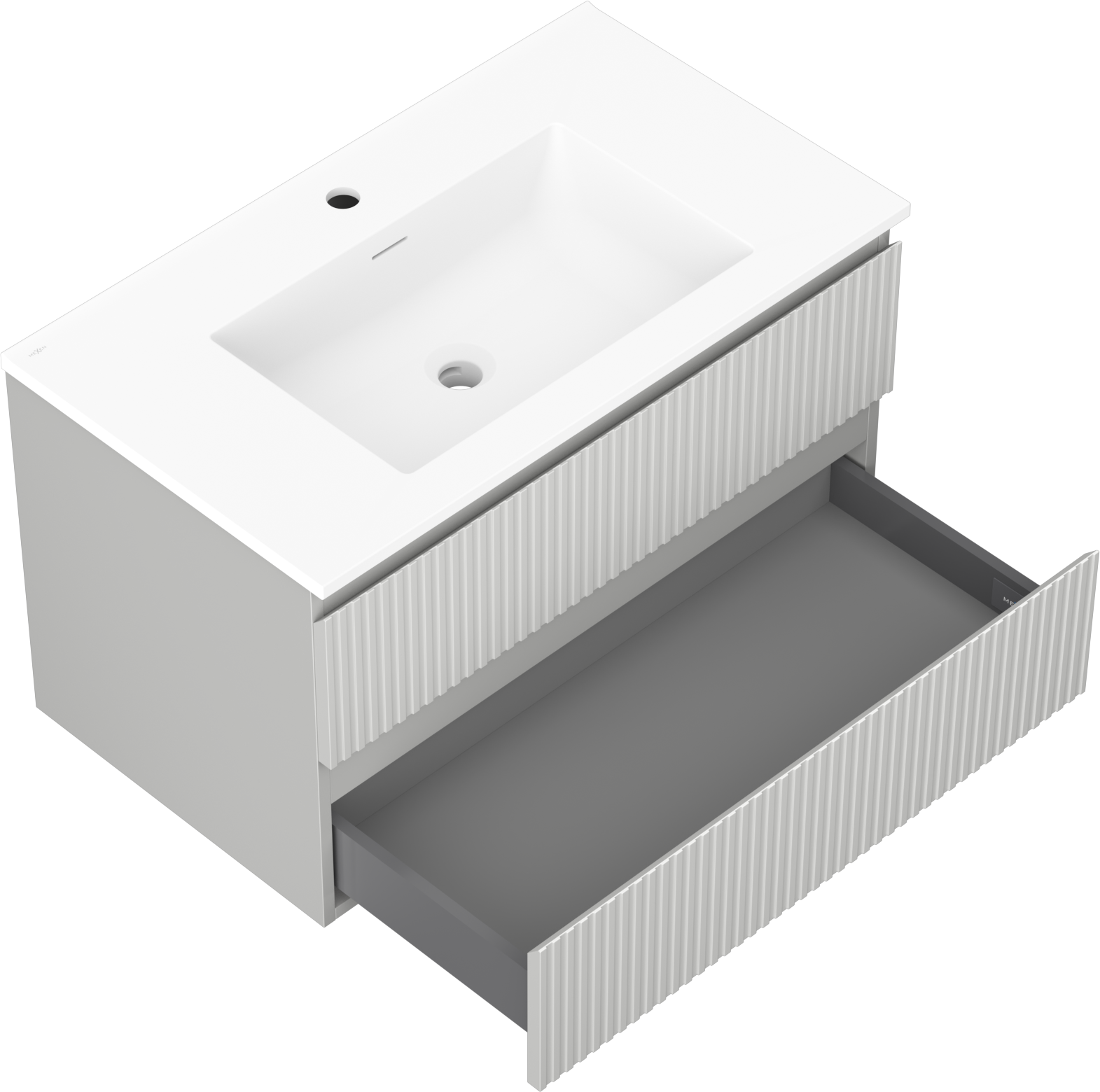 Mexen Rivel 80 cm vannasistabas skapis ar izlietni Otis, 2 atvilktnes, rievots, pelēks matēts/balts matēts