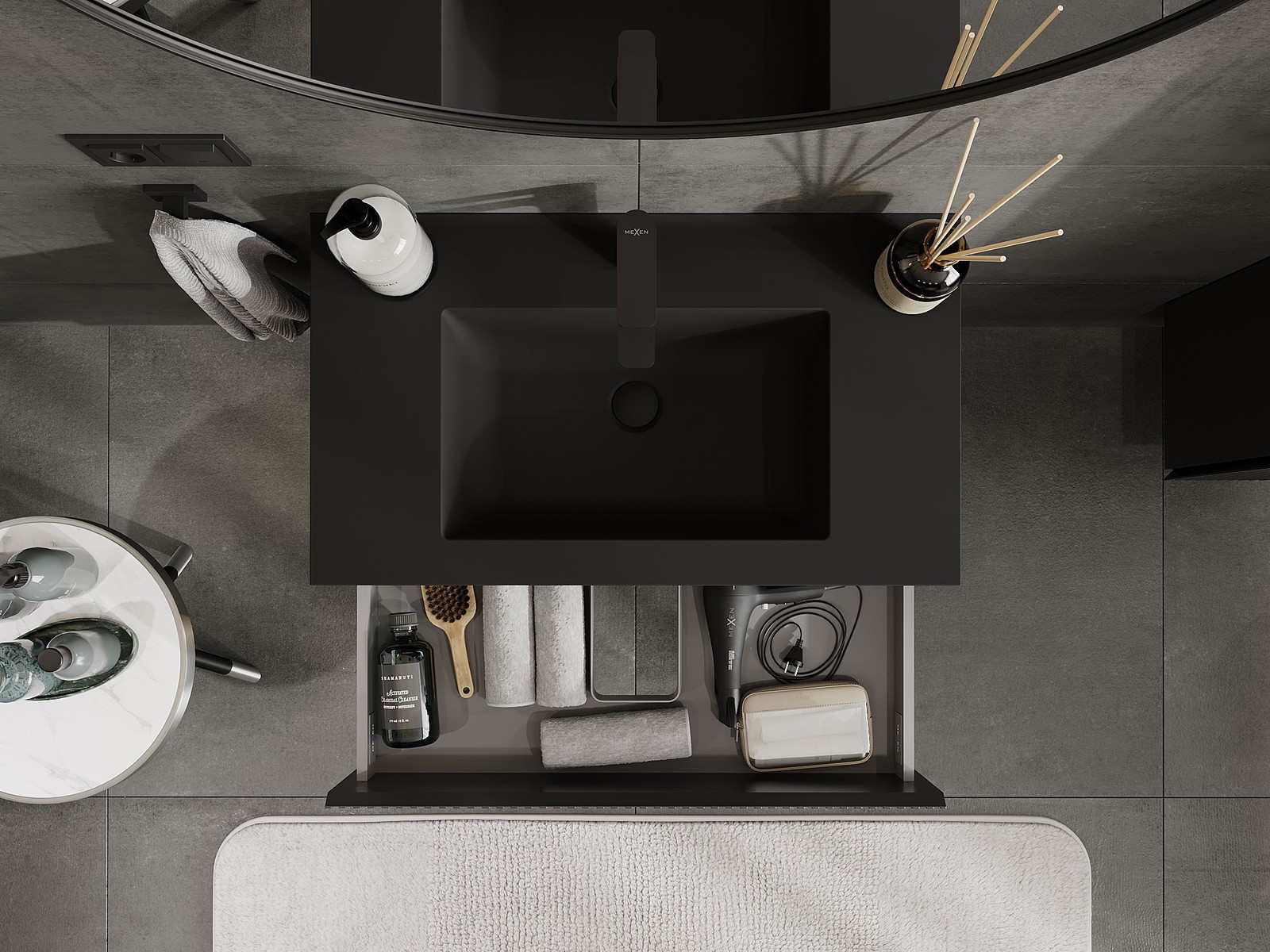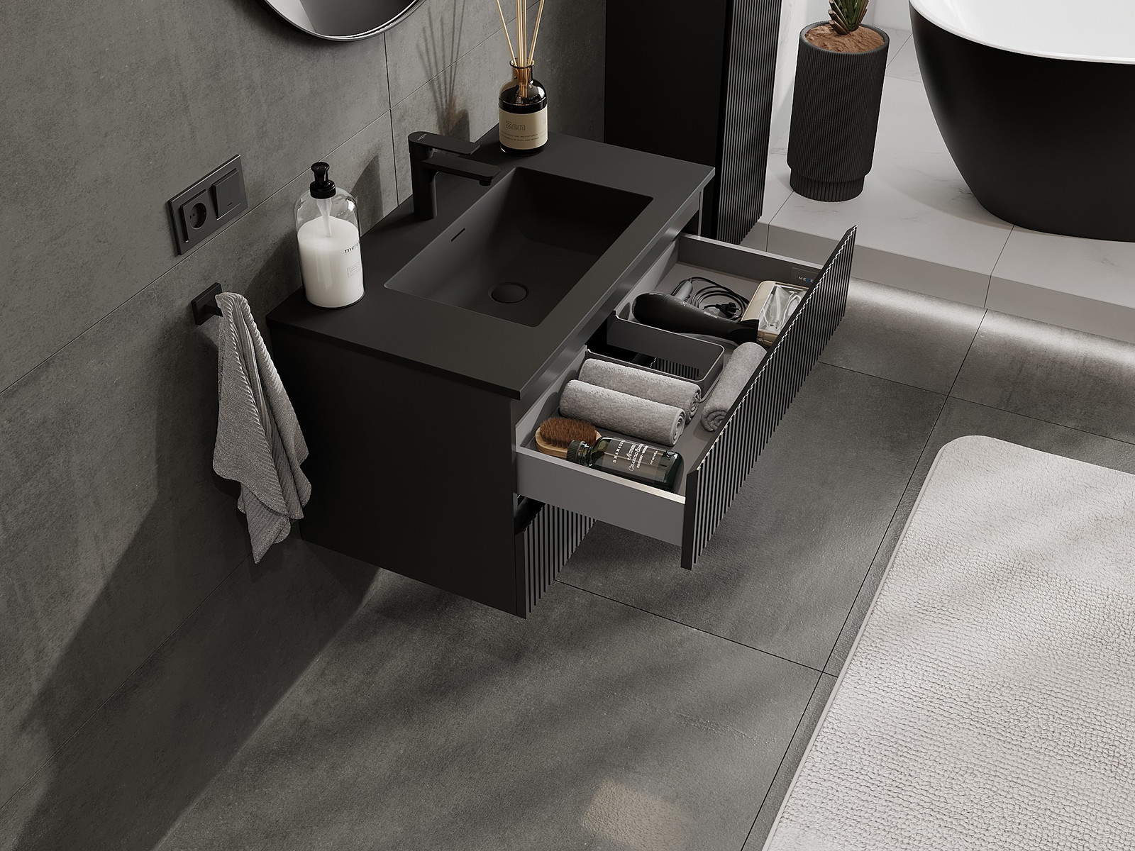 Mexen Rivel vannas istabas skapītis 80 cm ar izlietni Otis, 2 atvilktnes, rievots, melna matēta - 91A20-08047-2-BFF71-W18M71