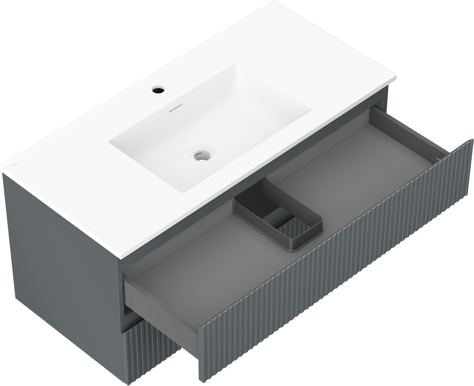 Izgriezums atvilktnē ir veidots tā, lai tajā varētu ietilpt sifons, kas ir nepieciešams izlietņu uzstādīšanā. Pateicoties tam, mēbele var tikt pilnībā funkcionāli uzstādīta, neatstājot ievērojamu vietu atvilktnē instalācijai.