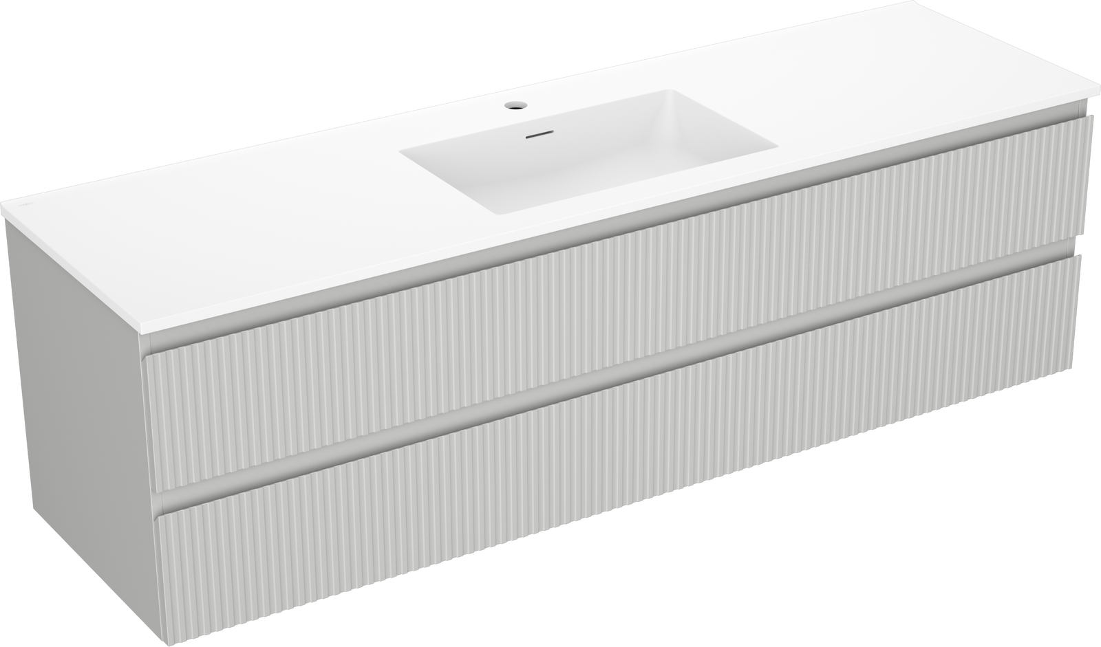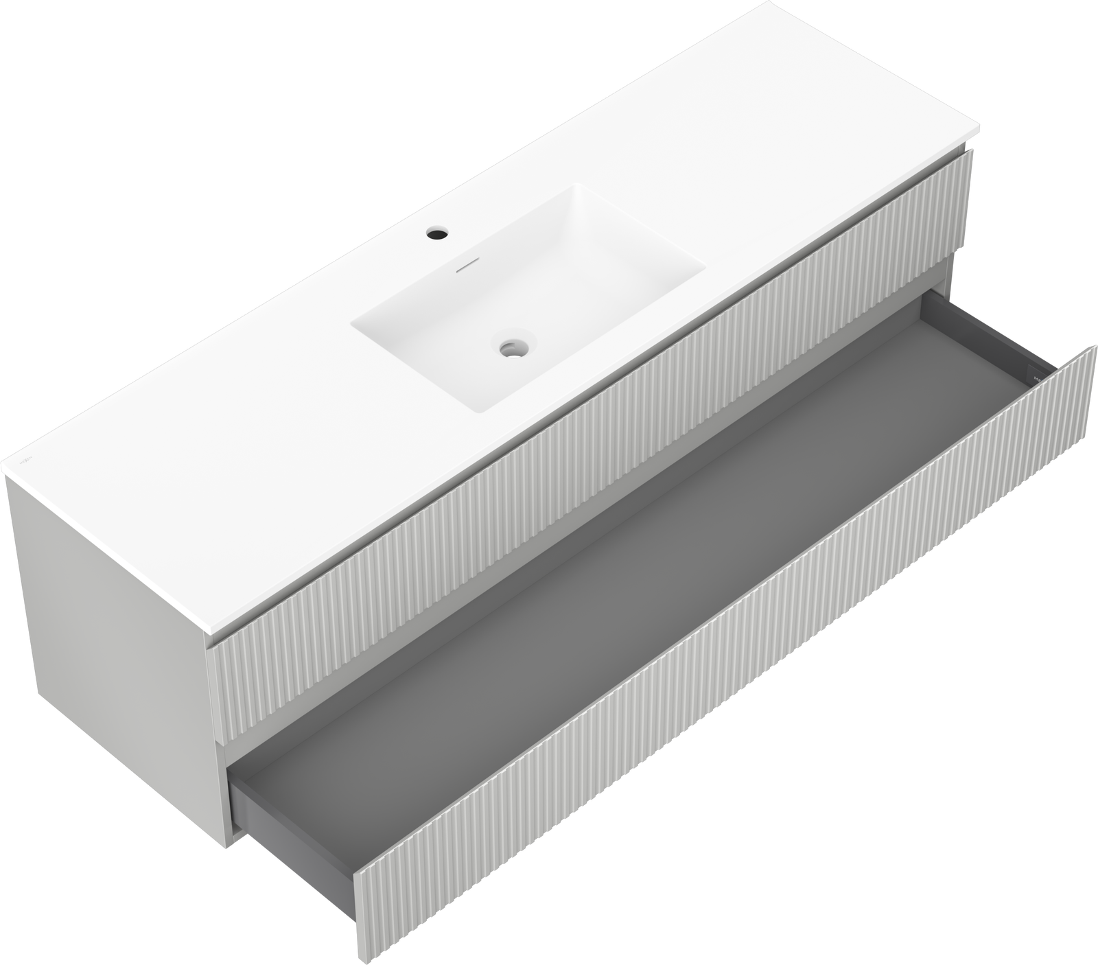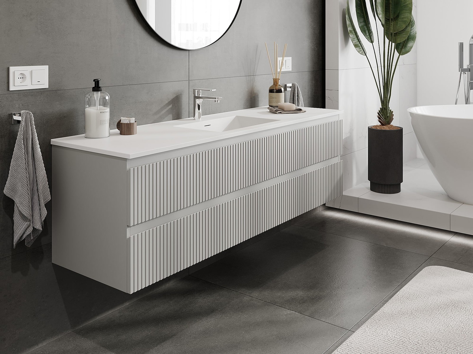 Mexen Rivel vannas istabas skapis 160 cm ar izlietni Otis, 2 atvilktnes, rievots, pelēks matēts/balts matēts -