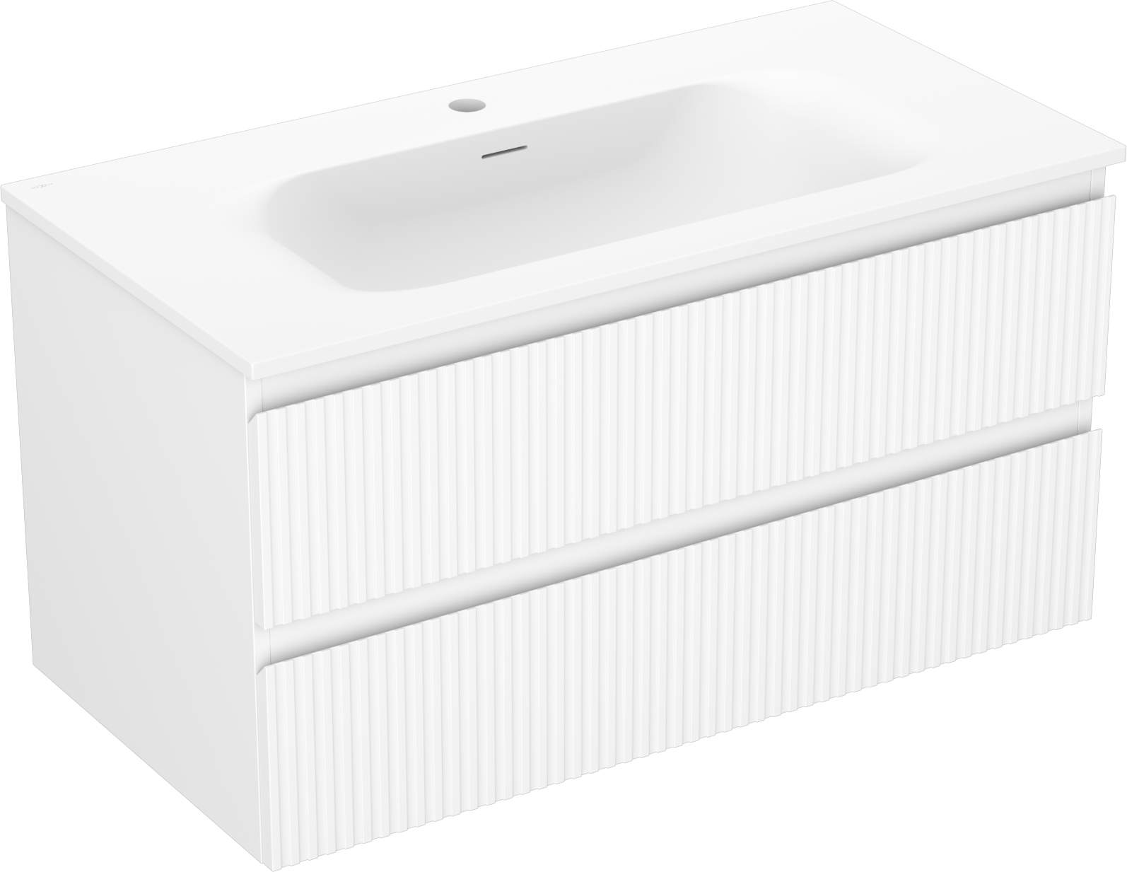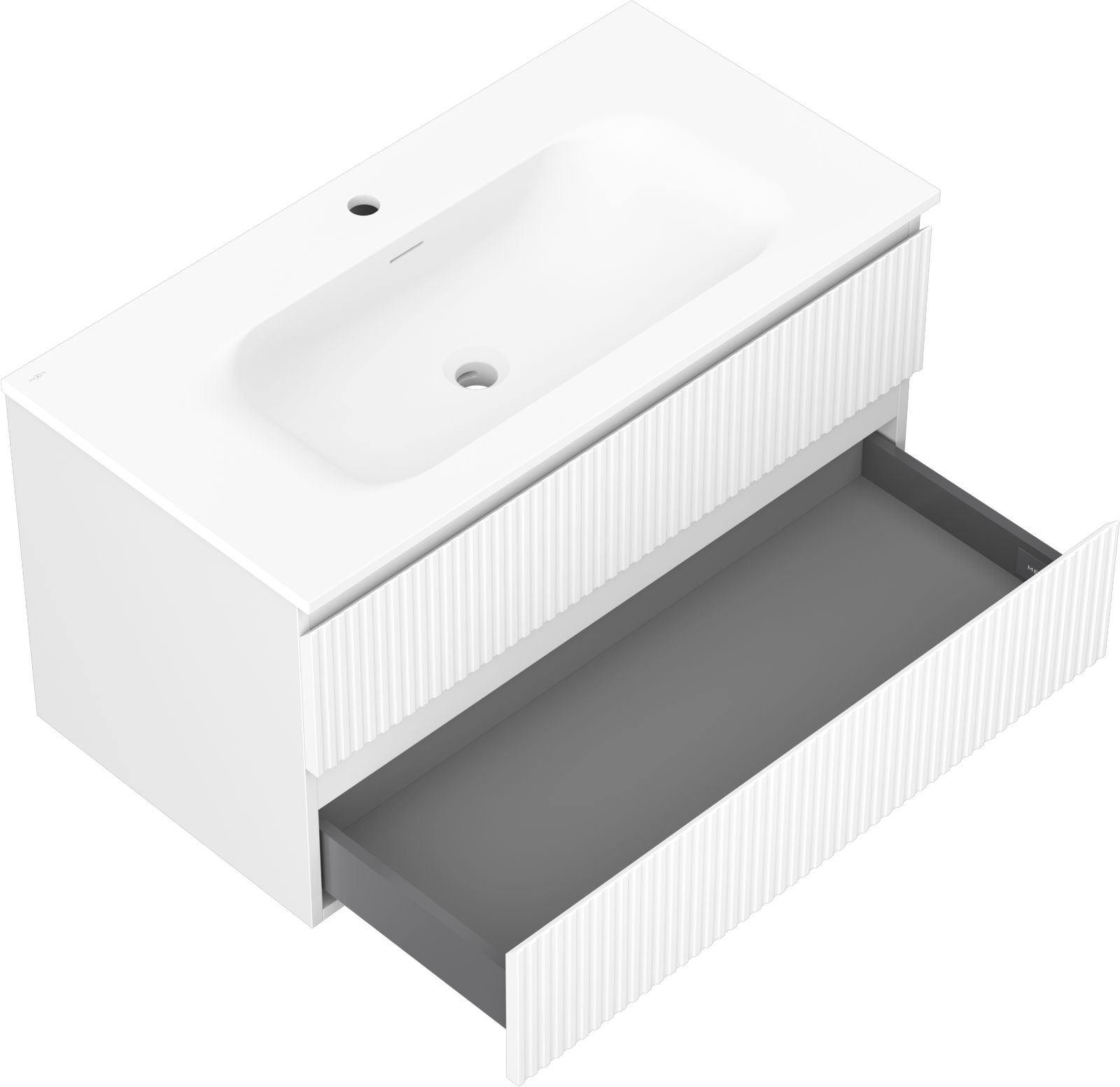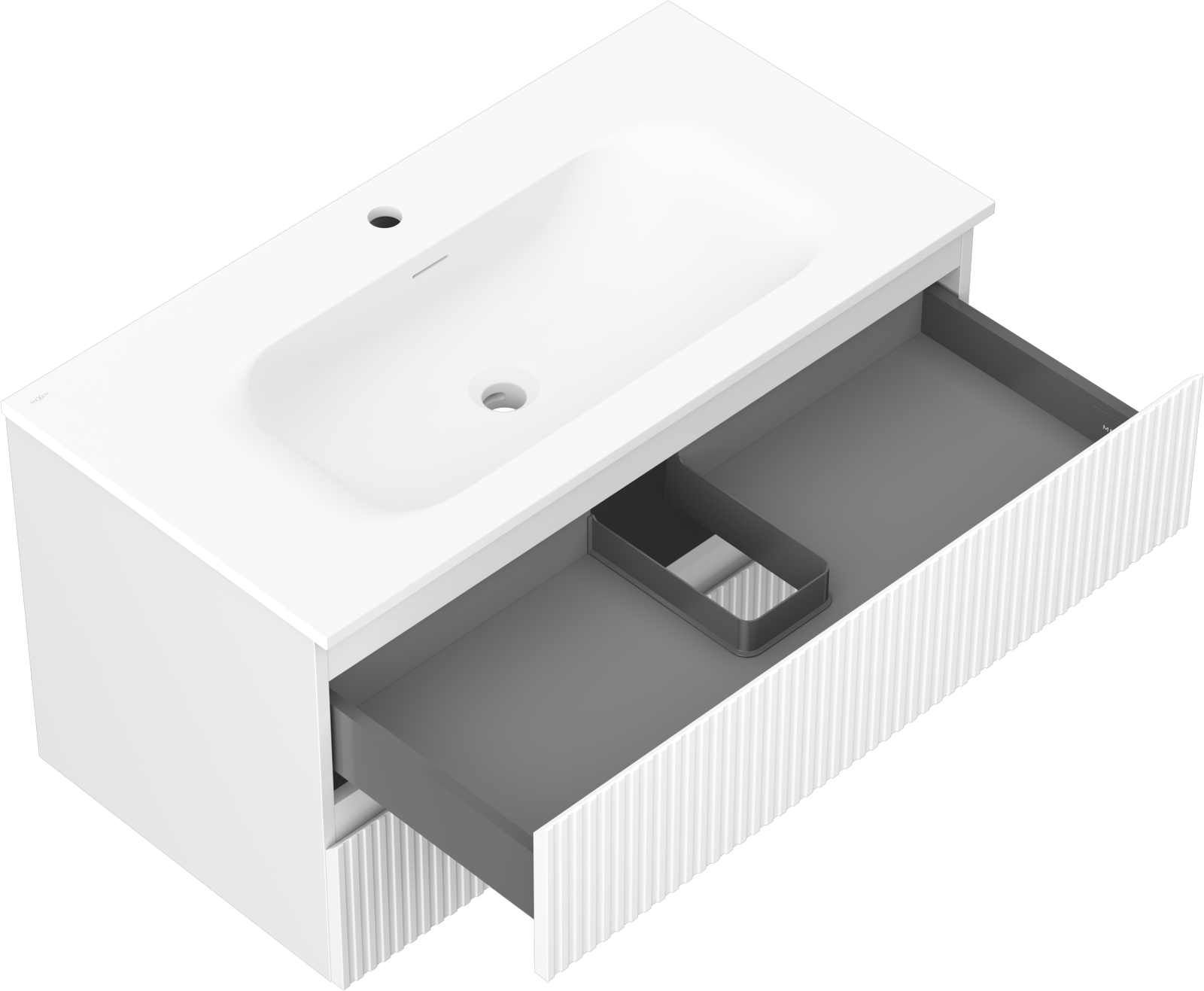 Mexen Rivel vannas istabas skapis 90 cm ar izlietni Vela, 2 atvilktnes, rievots, balts mats - 91A20-09047-2-BFF01-W23M01
