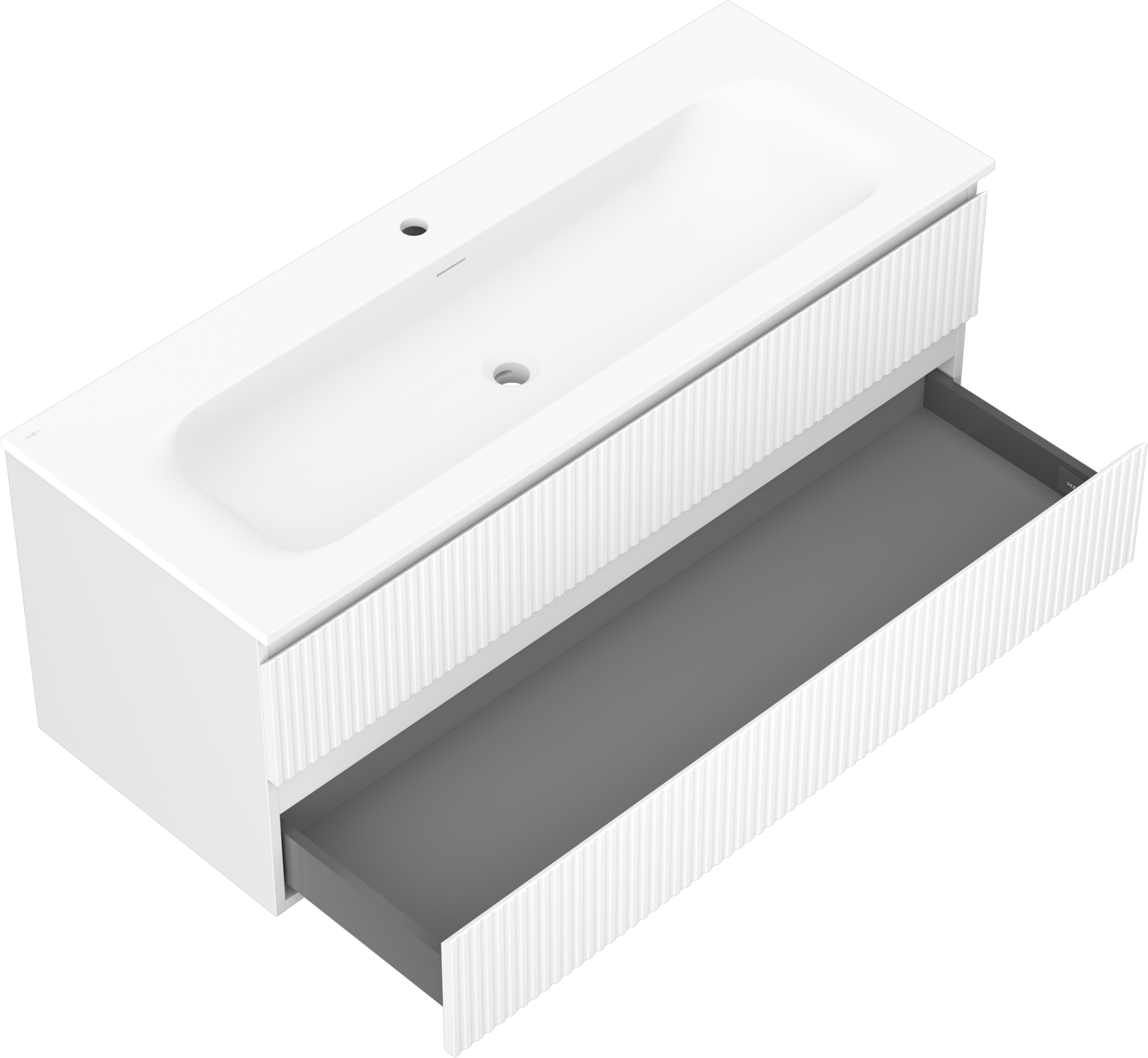 Mexen Rivel vannas istabas skapis 120 cm ar izlietni Vela, 2 atvilktnes, rievots, balts mats - 91A20-12047-2-BFF01-W23M01