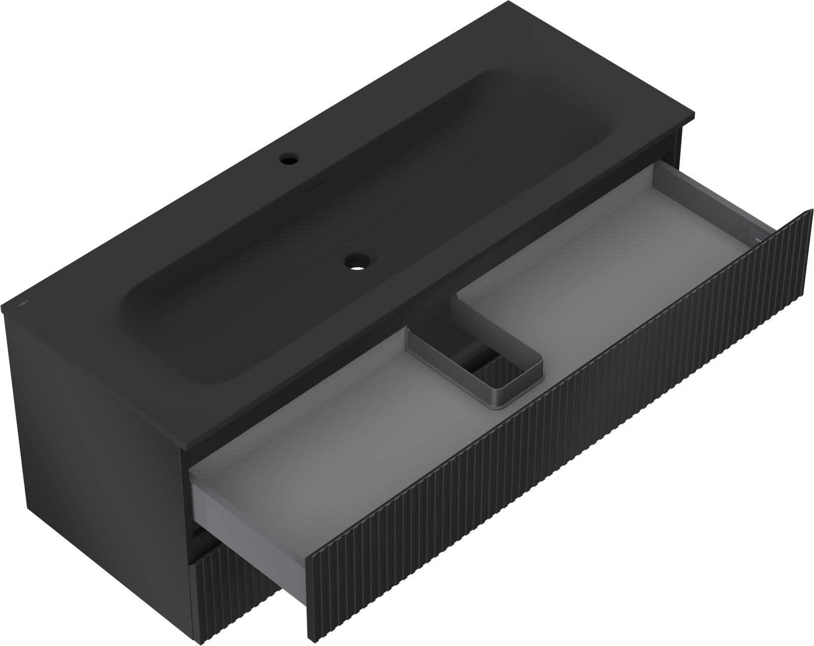 Mexen Rivel vannas istabas skapītis 120 cm ar izlietni Vela, 2 atvilktnes, rievojums, melns matēts - 91A20-12047-2-BFF71-W23M71