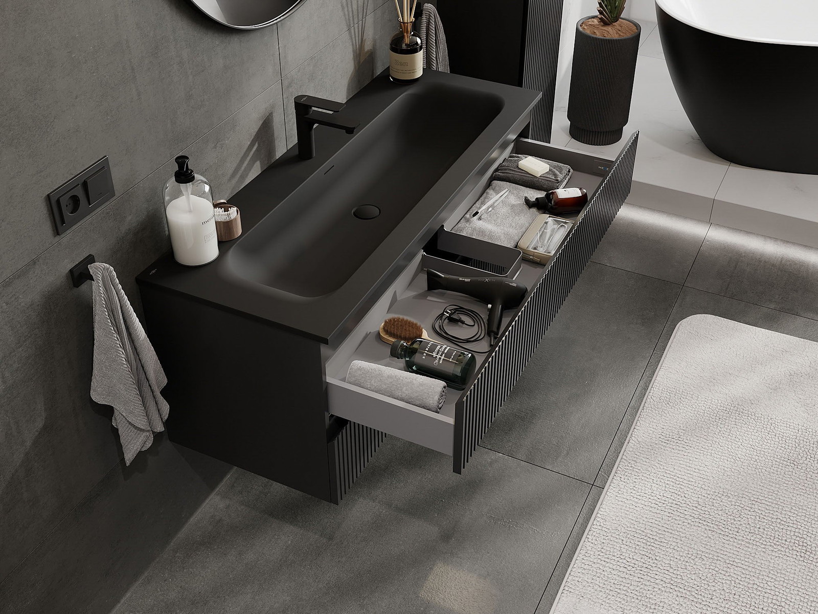 Izgriezums atvilktnē ir veidots tā, lai tajā varētu ietilpt sifons, kas ir nepieciešams izlietņu uzstādīšanā. Pateicoties tam, mēbele var tikt pilnībā funkcionāli uzstādīta, neatstājot ievērojamu vietu atvilktnē instalācijai.