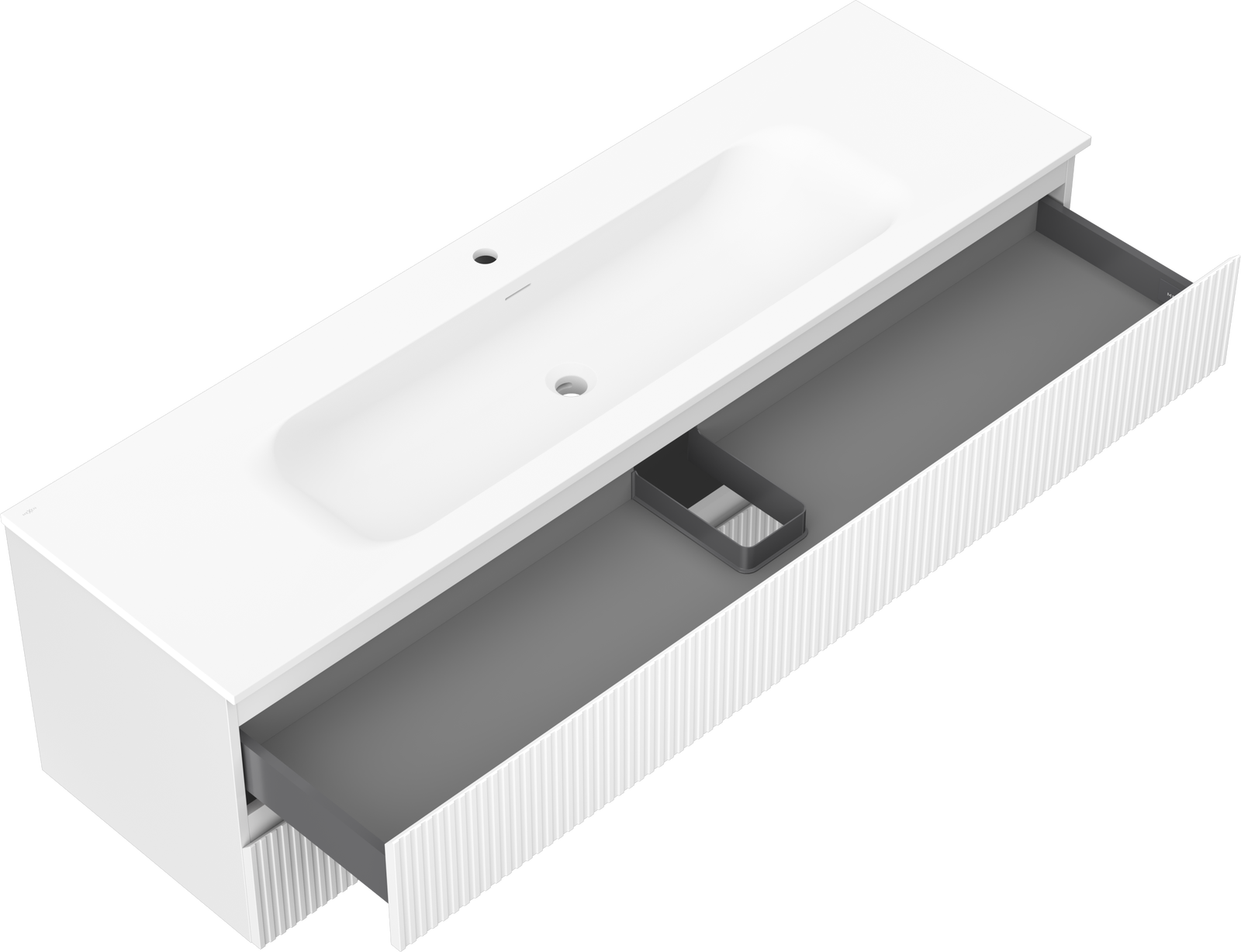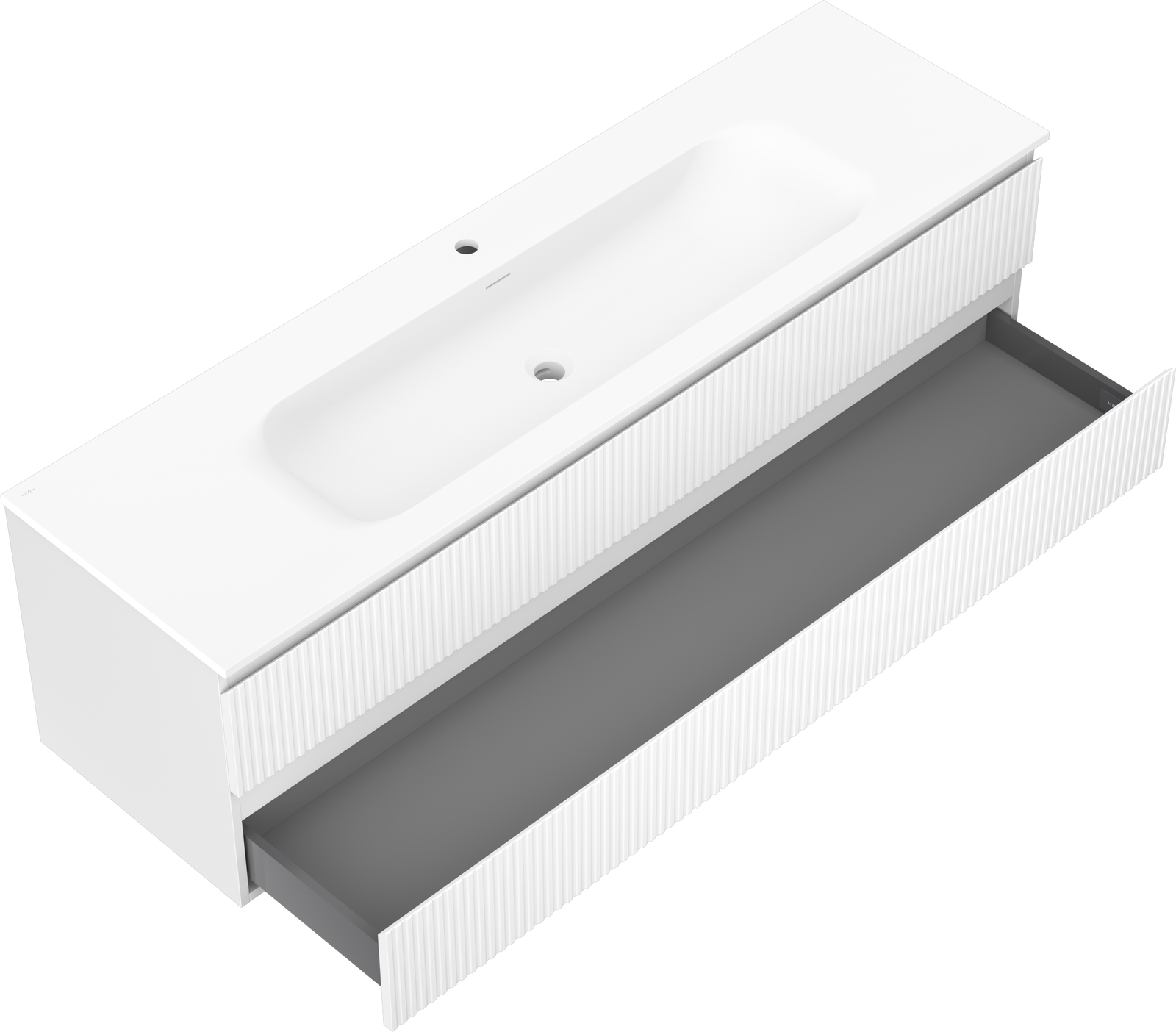 Mexen Rivel vannas istabas skapis 160 cm ar izlietni Vela, 2 atvilktnes, rievots, balts mats - 91A20-16047-2-BFF01-W23M01
