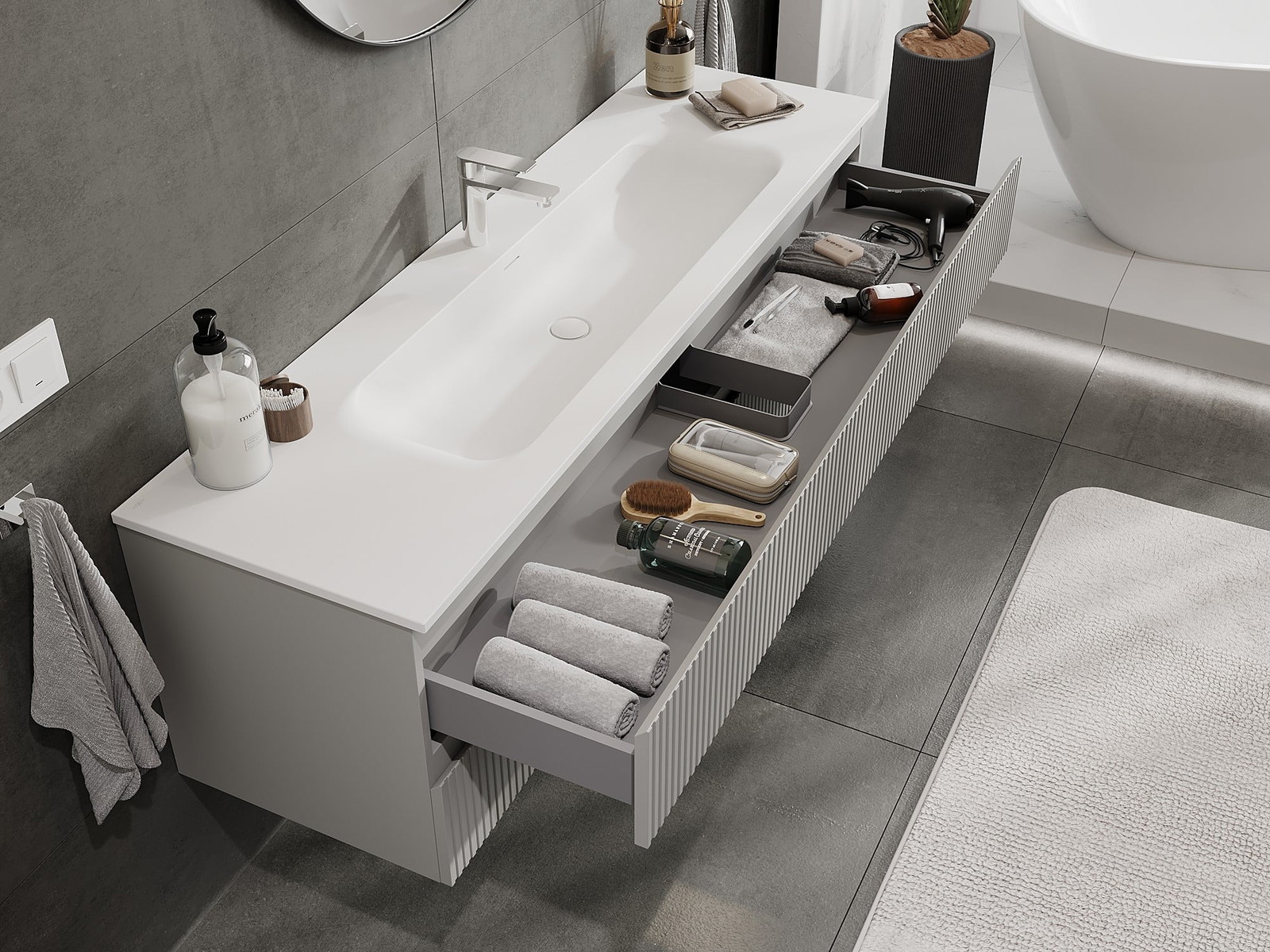 Mūsu modulārās vannas istabas mēbeles var savstarpēji kombinēt dažādās krāsu konfigurācijās, ļaujot pilnīgu personalizāciju. Var izvēlēties gan izskatu, gan atsevišķu elementu funkcijas, kas ļauj pielāgot mēbeles savām stilistiskajām un lietotāju vēlmēm.
