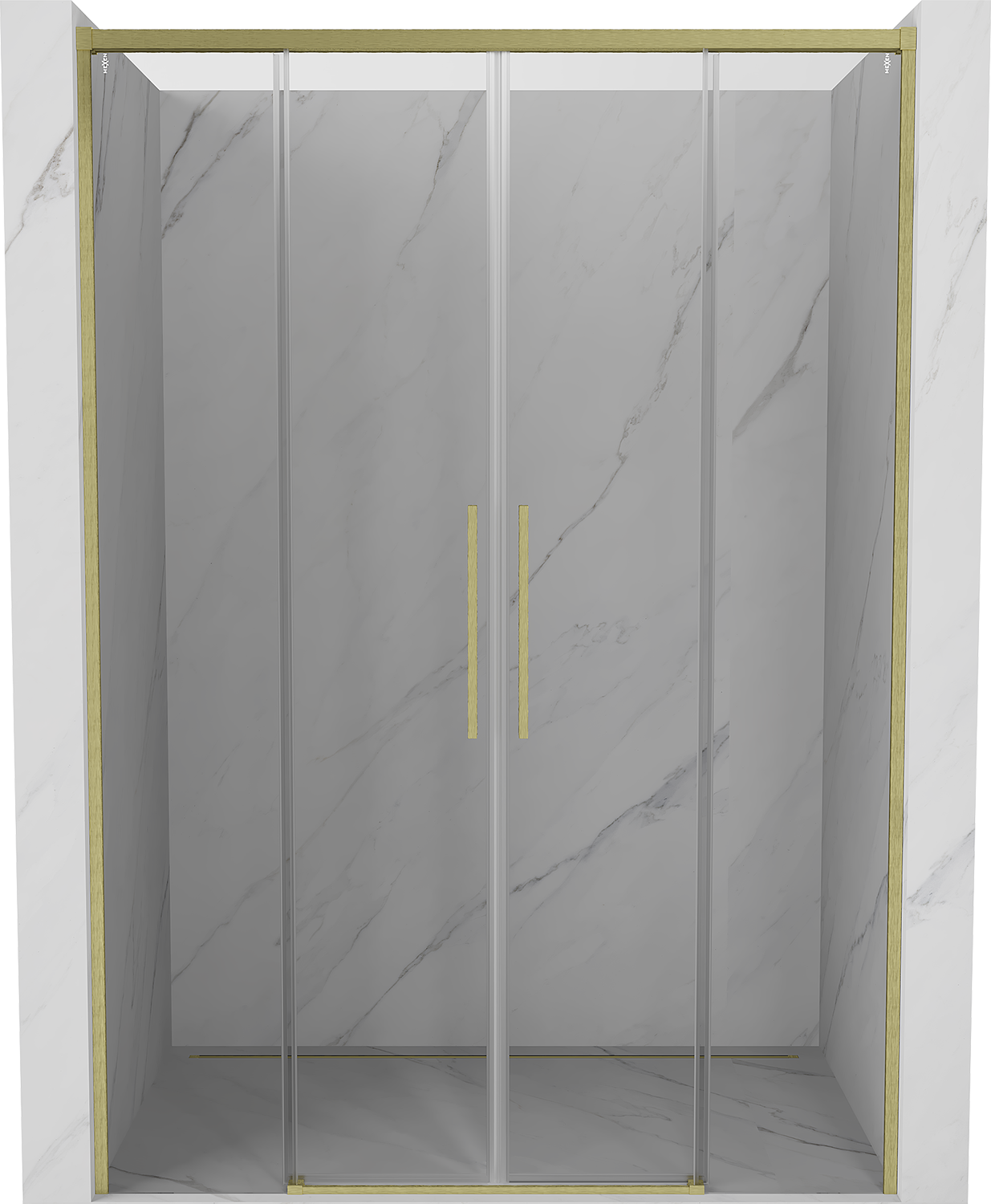 Mexen Rox Duo bīdāmās dušas durvis 160 cm, caurspīdīgas, birstēts zelts - 8C2-160-002-55-00