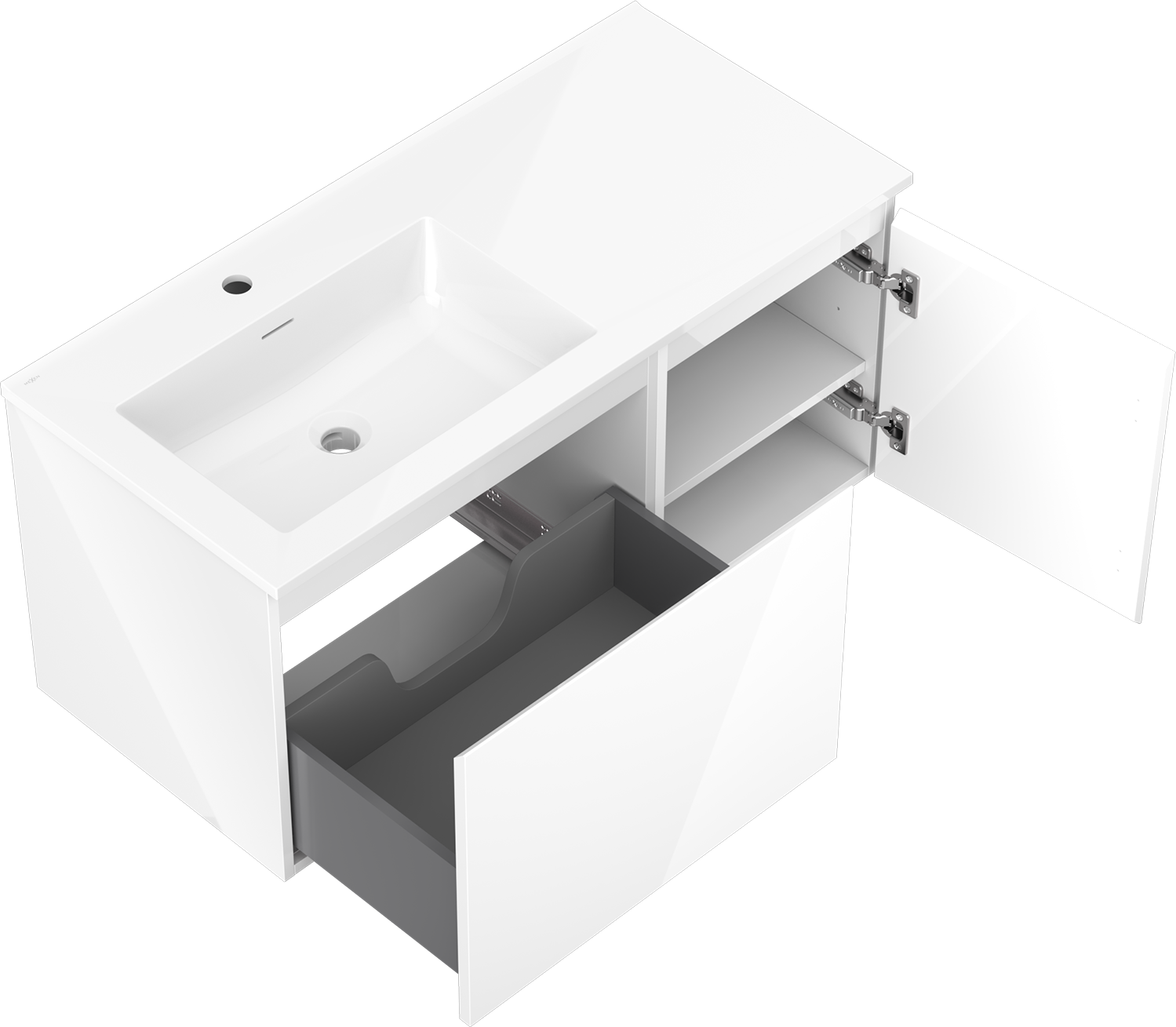 Mexen Orio 100 cm vannas istabas skapītis ar kreiso izlietni Otis, 1S, 1D, balts spīdums - 91A13-10047-3-BBFF00-W18L00