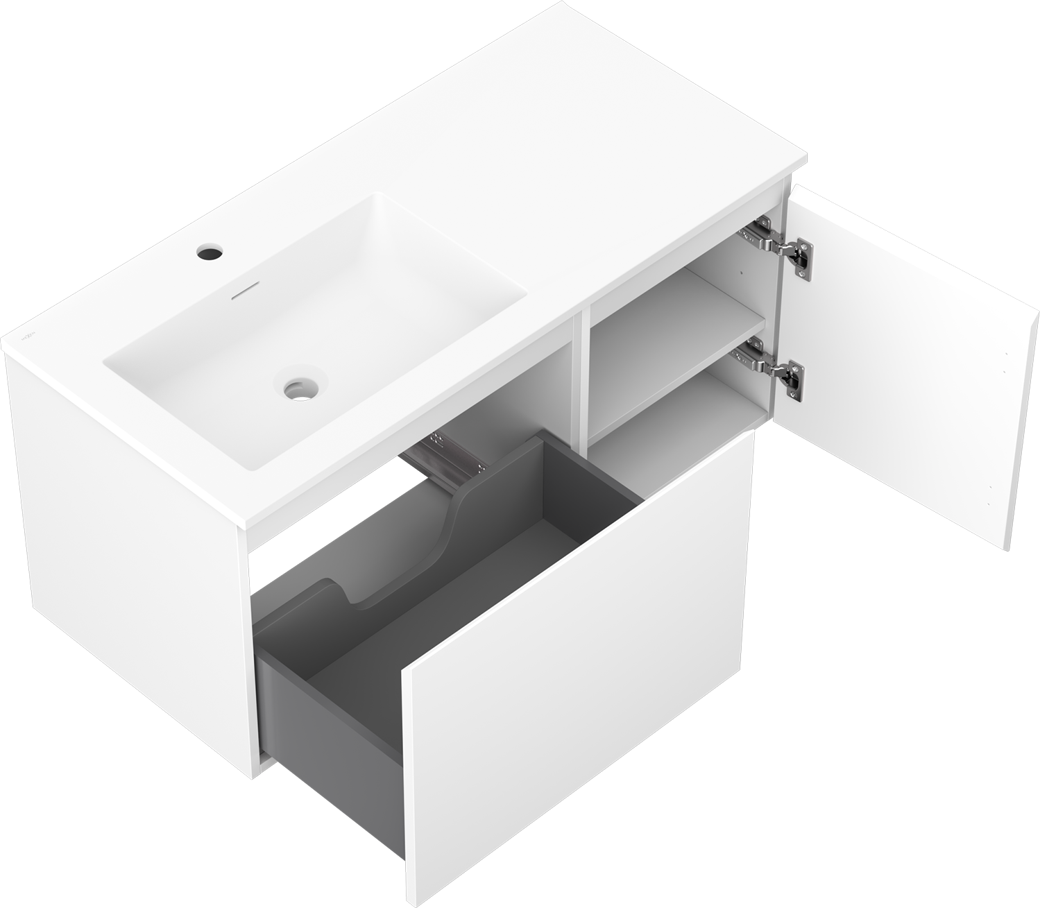 Mexen Orio vannas istabas skapis 100 cm ar kreiso izlietni Otis, 1S, 1D, balts mats - 91A13-10047-3-BBFF01-W18L01