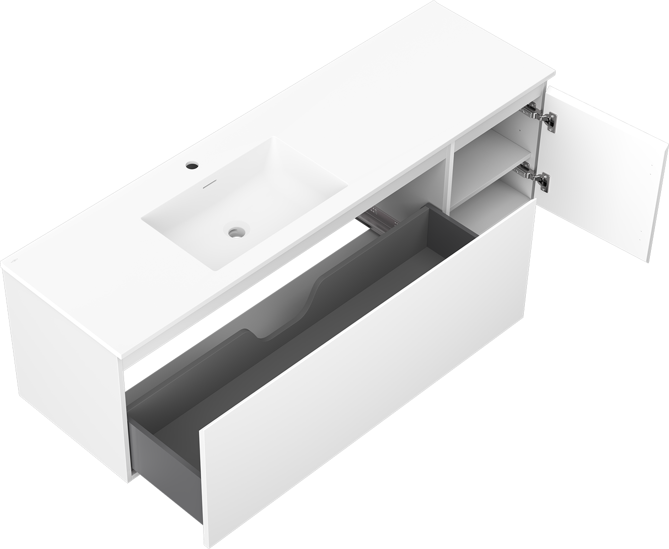 Izgriezums atvilktnē ir veidots tā, lai tajā varētu ietilpt sifons, kas ir nepieciešams izlietņu uzstādīšanā. Pateicoties tam, mēbele var tikt pilnībā funkcionāli uzstādīta, neatstājot ievērojamu vietu atvilktnē instalācijai.
