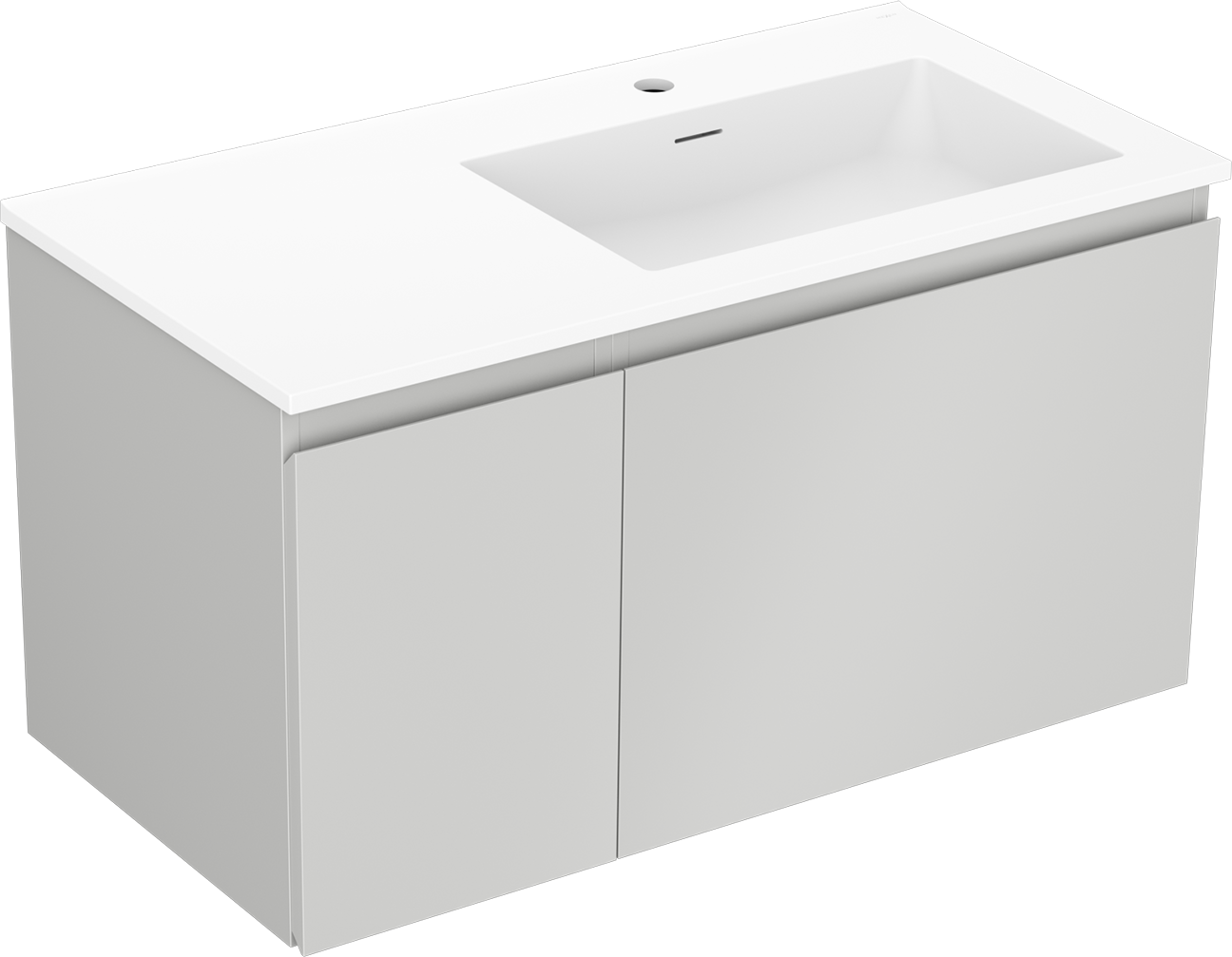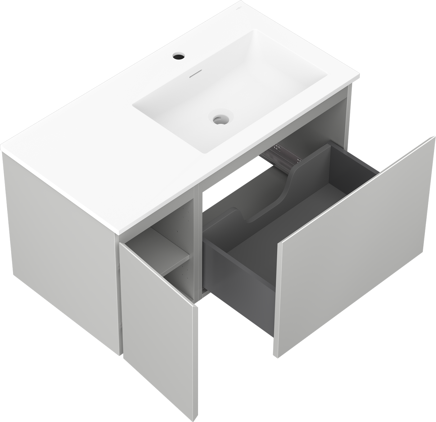 Mexen Orio vannas istabas skapis 90 cm ar izlietni Otis labajā pusē, 1S, 1D, pelēks matēts/balts matēts
