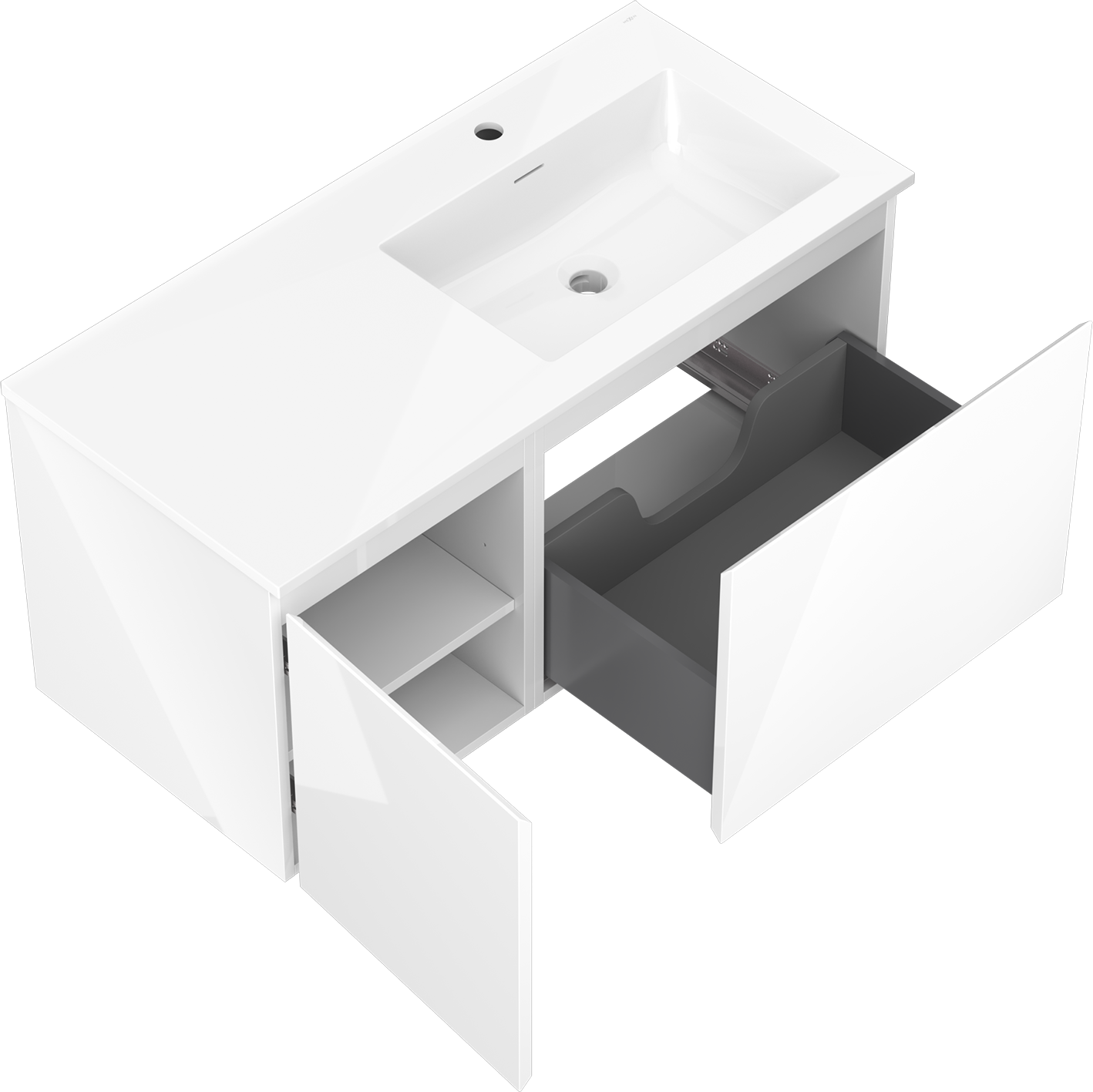 Izgriezums atvilktnē ir veidots tā, lai tajā varētu ietilpt sifons, kas ir nepieciešams izlietņu uzstādīšanā. Pateicoties tam, mēbele var tikt pilnībā funkcionāli uzstādīta, neatstājot ievērojamu vietu atvilktnē instalācijai.
