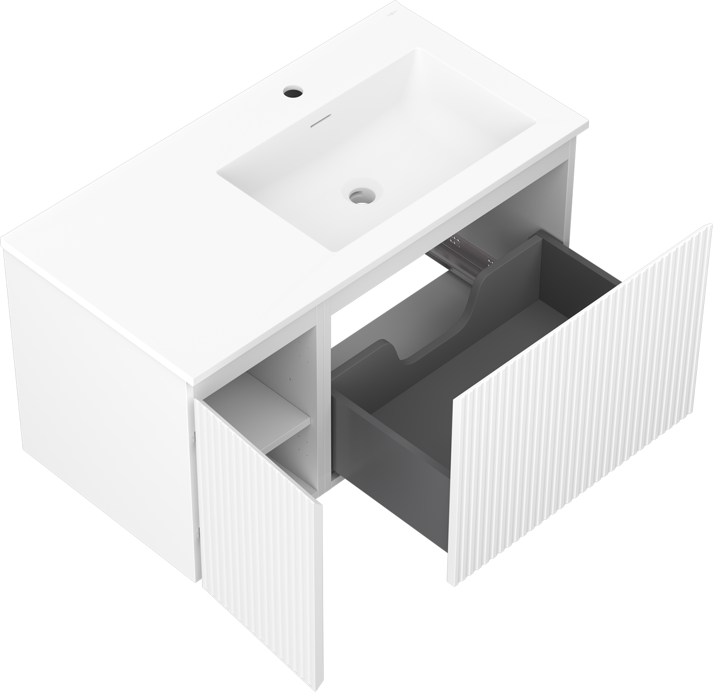 Mexen Rivel vannas istabas skapītis 90 cm ar izlietni Otis labajā pusē, 1S, 1D, rievots, balts mats