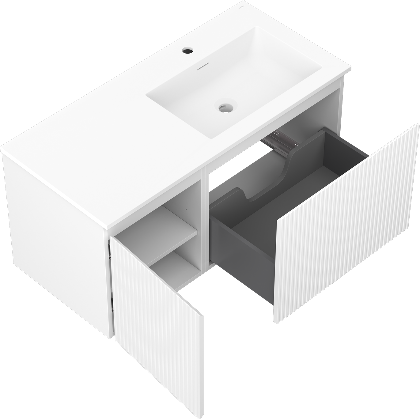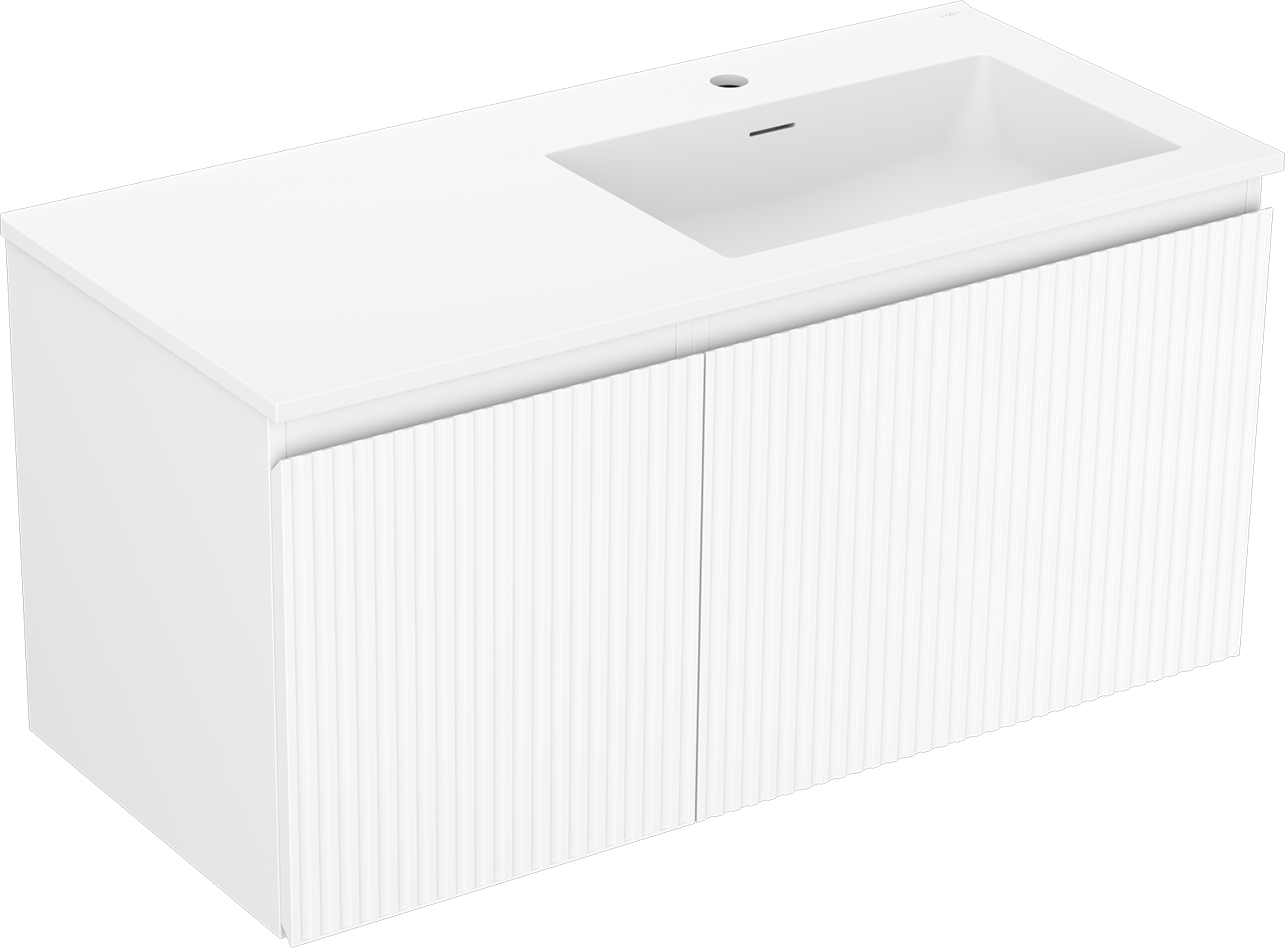 Mexen Rivel vannas istabas skapītis 100 cm ar izlietni Otis, labajā pusē, 1S, 1D, rievots, balts matēts