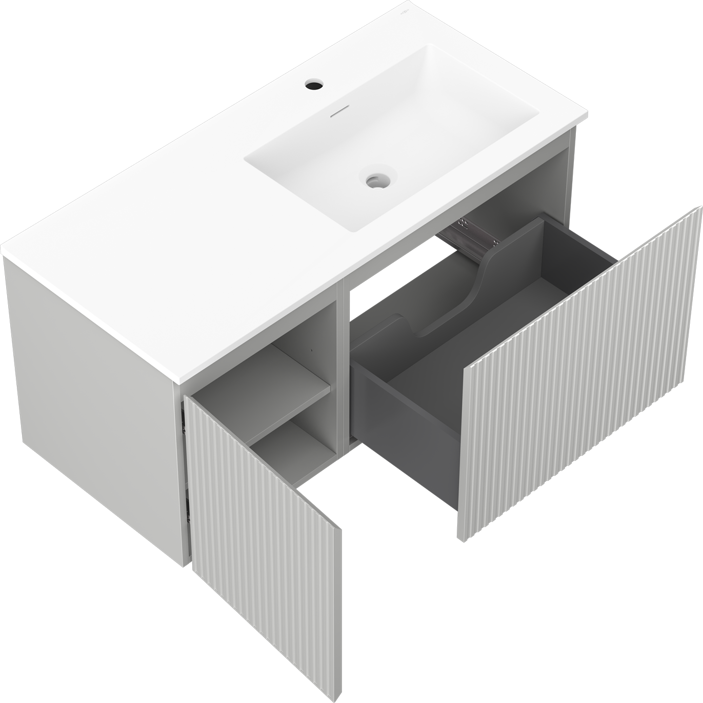 Mexen Rivel vannas istabas skapis 100 cm ar izlietni Otis labajā pusē, 1S, 1D, rievojums, pelēks matēts/balts matēts
