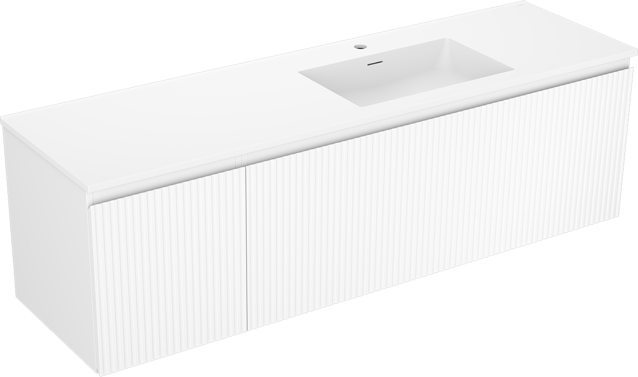 Mexen Rivel vannas istabas skapītis 160 cm ar izlietni Otis labā, 1S, 1D, rievots, balts matēts - 91A23-16047-3-BBFF01-W18P01