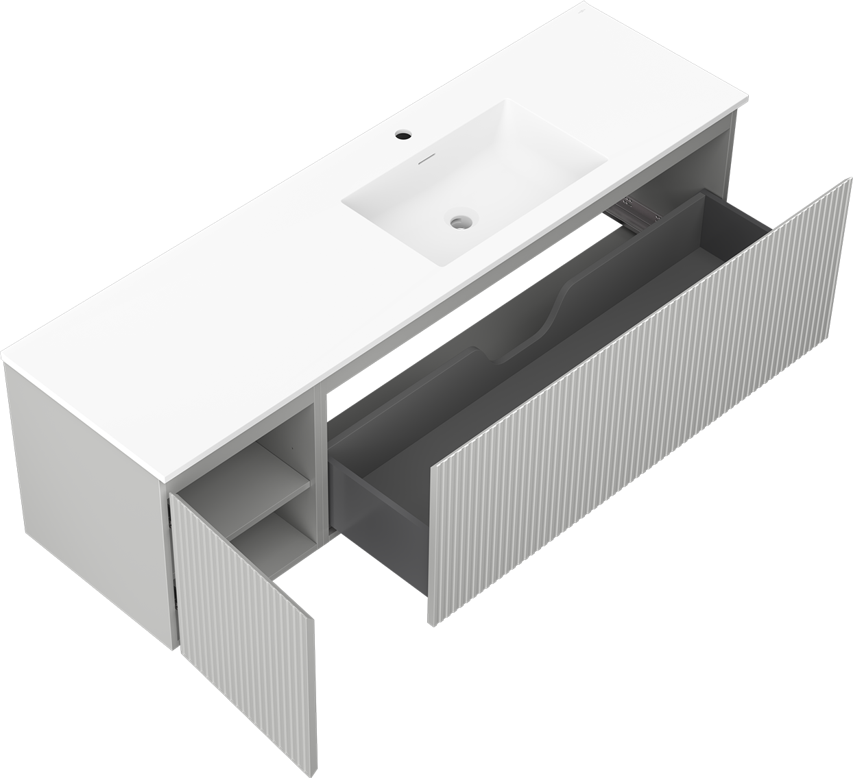 Mexen Rivel 160 cm vannas istabas skapītis ar izlietni Otis, labās puses, 1S, 1D, ar rievām, pelēks matēts/balts matēts
