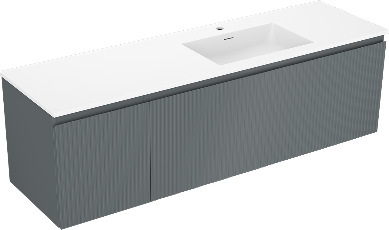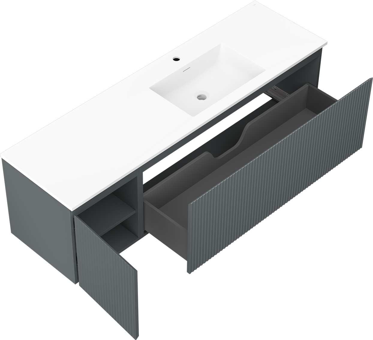Mexen Rivel vannas istabas skapītis 160 cm ar izlietni Otis labajā pusē, 1S, 1D, rievots, grafīts/balts matēts