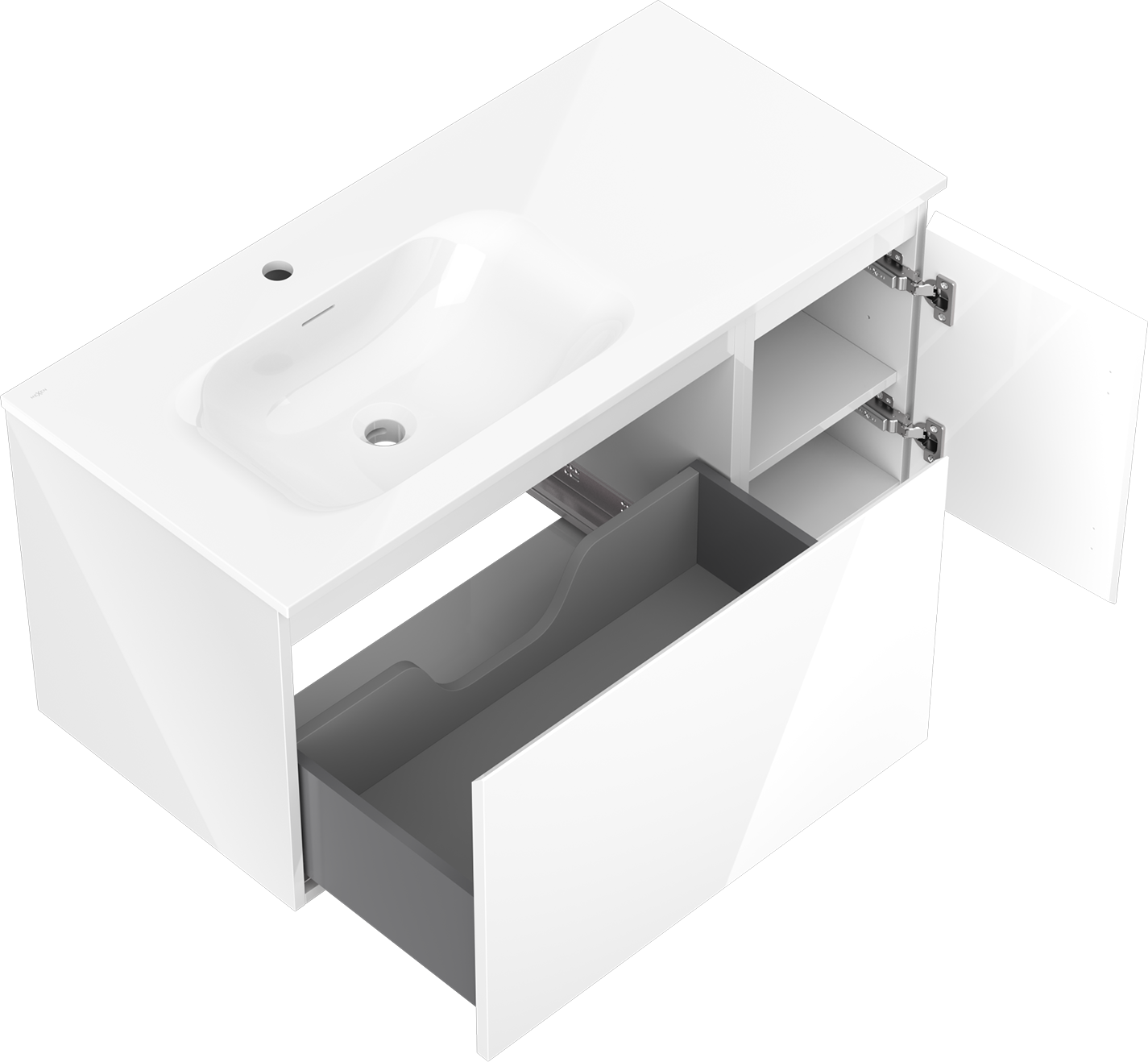 Izgriezums atvilktnē ir veidots tā, lai tajā varētu ietilpt sifons, kas ir nepieciešams izlietņu uzstādīšanā. Pateicoties tam, mēbele var tikt pilnībā funkcionāli uzstādīta, neatstājot ievērojamu vietu atvilktnē instalācijai.