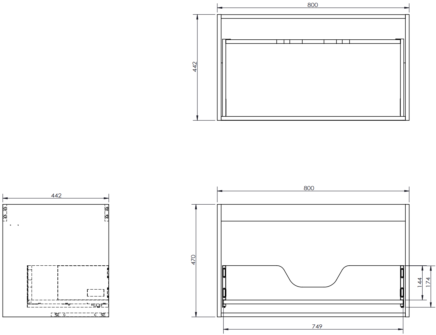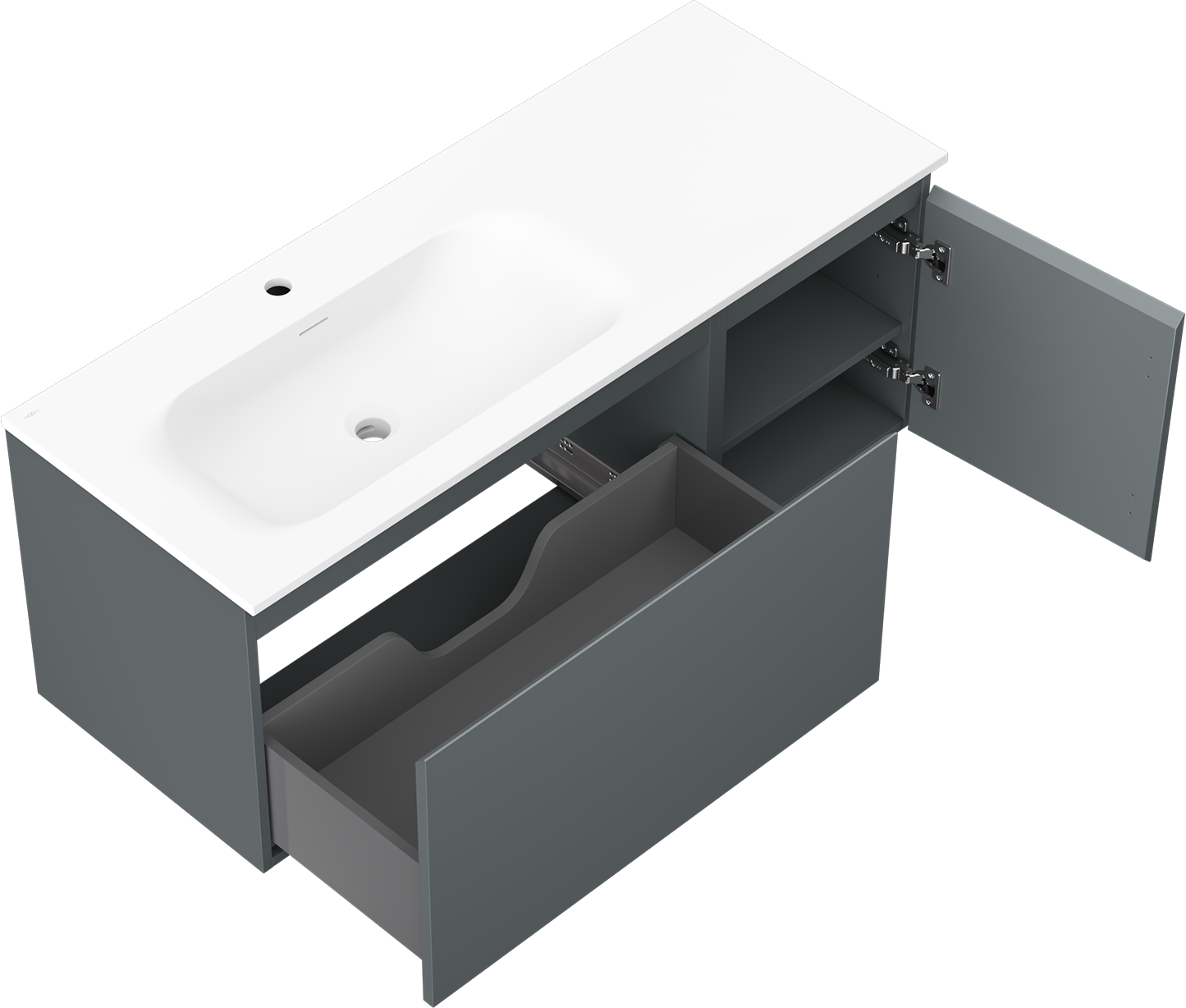 Izgriezums atvilktnē ir veidots tā, lai tajā varētu ietilpt sifons, kas ir nepieciešams izlietņu uzstādīšanā. Pateicoties tam, mēbele var tikt pilnībā funkcionāli uzstādīta, neatstājot ievērojamu vietu atvilktnē instalācijai.