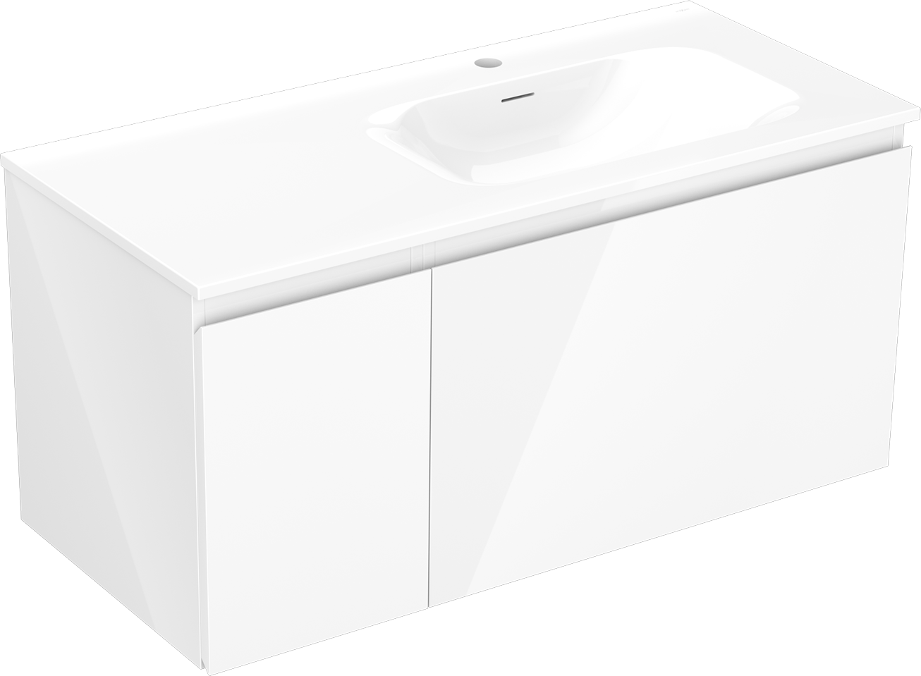 Mexen Orio 100 cm vannasistabas skapītis ar izlietni Vela labajā pusē, 1S, 1D, balts spīdīgs - 91A13-10047-3-BBFF00-W23P00