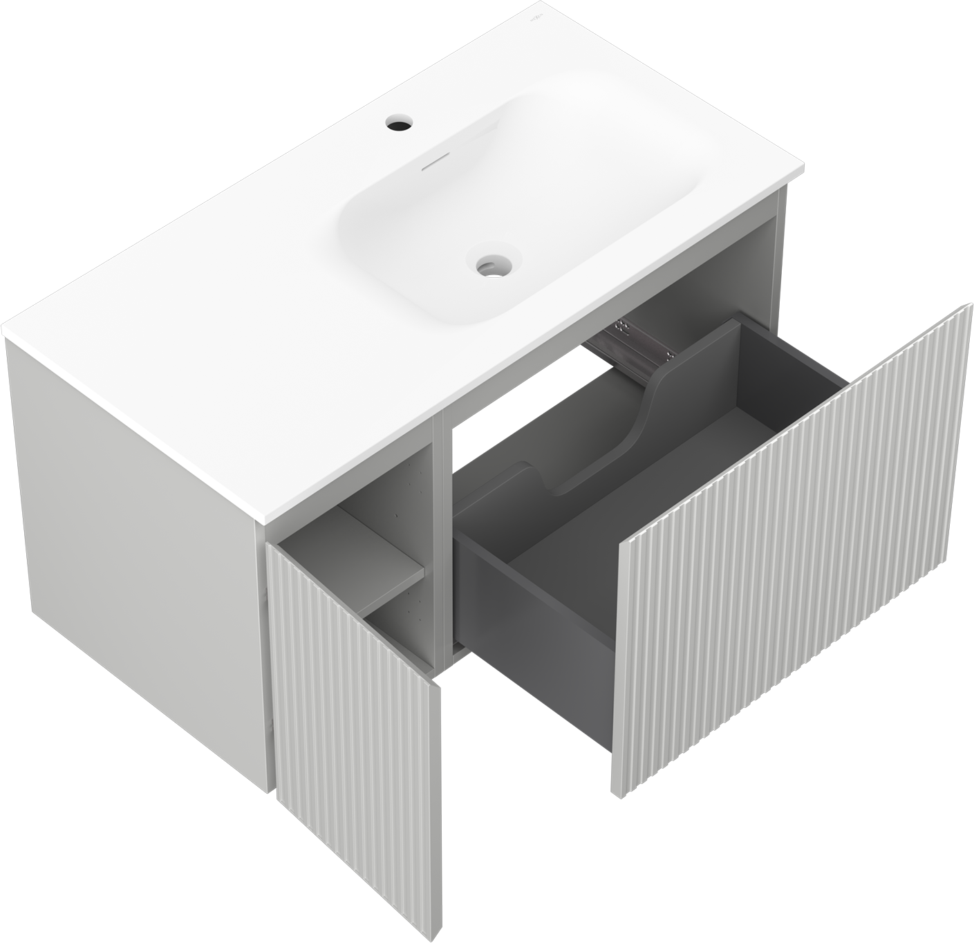 Izgriezums atvilktnē ir veidots tā, lai tajā varētu ietilpt sifons, kas ir nepieciešams izlietņu uzstādīšanā. Pateicoties tam, mēbele var tikt pilnībā funkcionāli uzstādīta, neatstājot ievērojamu vietu atvilktnē instalācijai.