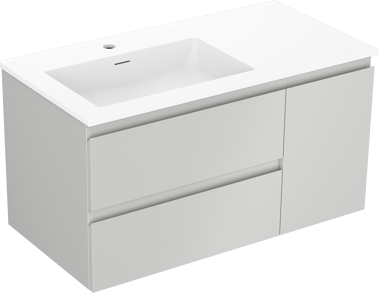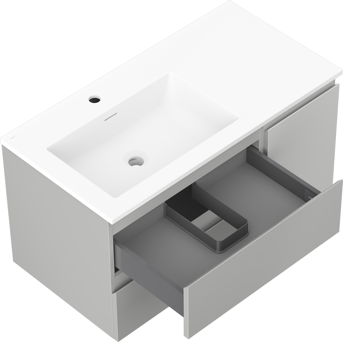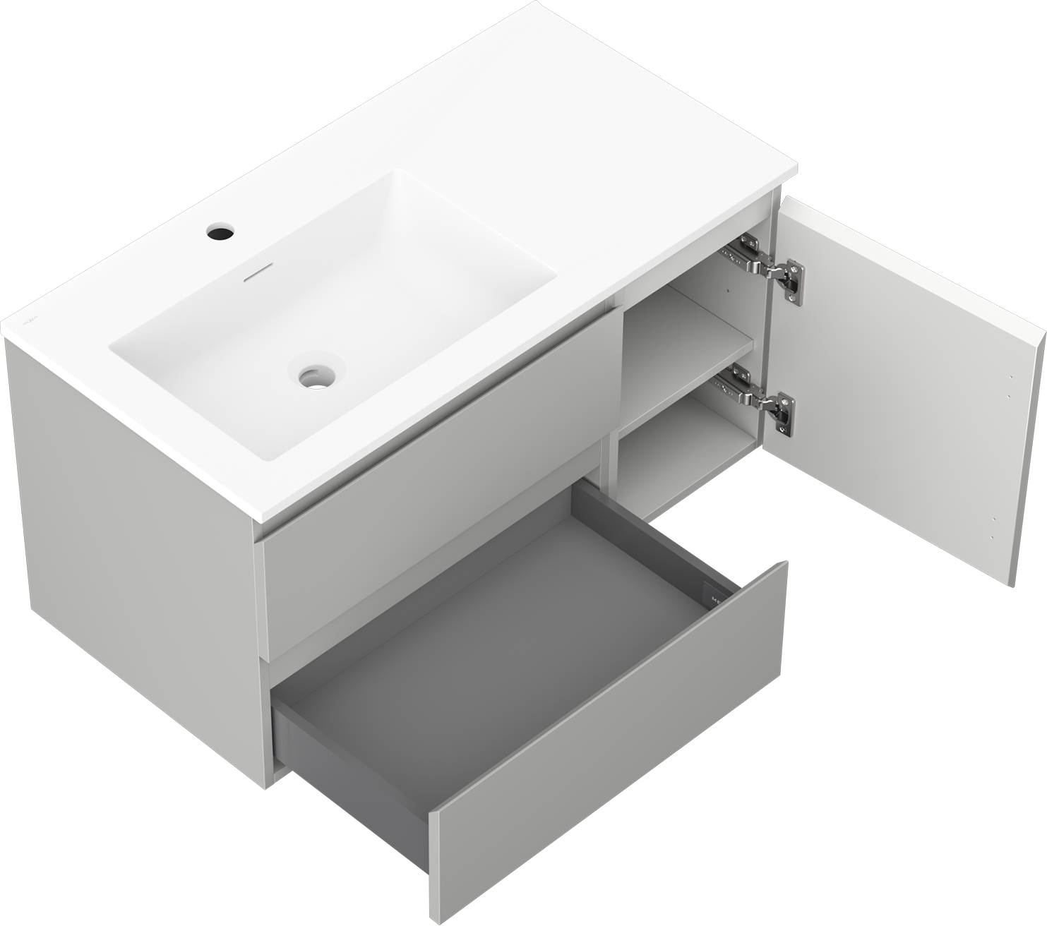Mexen Orio 90 cm vannas istabas skapītis ar kreiso izlietni Otis, 2S, 1D, pelēks mats/balts mats