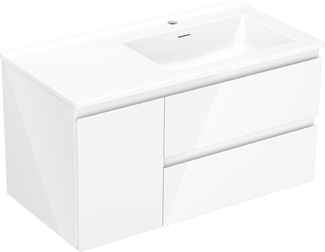Mexen Orio 90 cm vannas istabas skapis ar Otis labās puses izlietni, 2S, 1D, balts spīdums - 91A13-09047-3-BBFFF00-W18P00