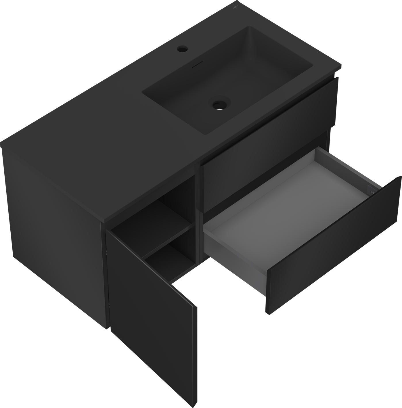 Mexen Orio 100 cm vannas istabas skapītis ar izlietni Otis pa labi, 2S, 1D, melns matēts - 91A13-10047-3-BBFFF71-W18P71