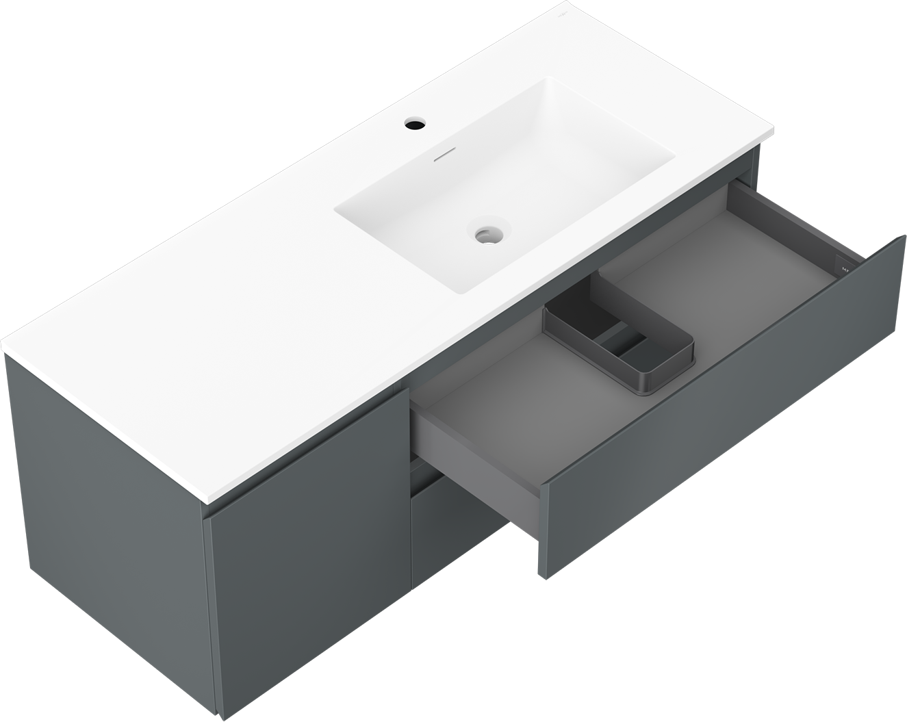 Izgriezums atvilktnē ir veidots tā, lai tajā varētu ietilpt sifons, kas ir nepieciešams izlietņu uzstādīšanā. Pateicoties tam, mēbele var tikt pilnībā funkcionāli uzstādīta, neatstājot ievērojamu vietu atvilktnē instalācijai.