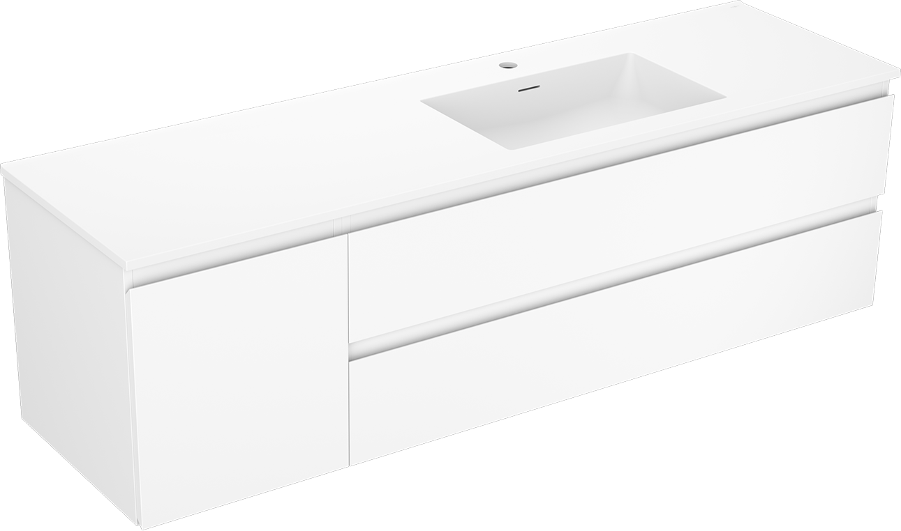 Mexen Orio 160 cm vannas istabas skapītis ar izlietni Otis labajā pusē, 2S, 1D, balts matēts - 91A13-16047-3-BBFFF01-W18P01