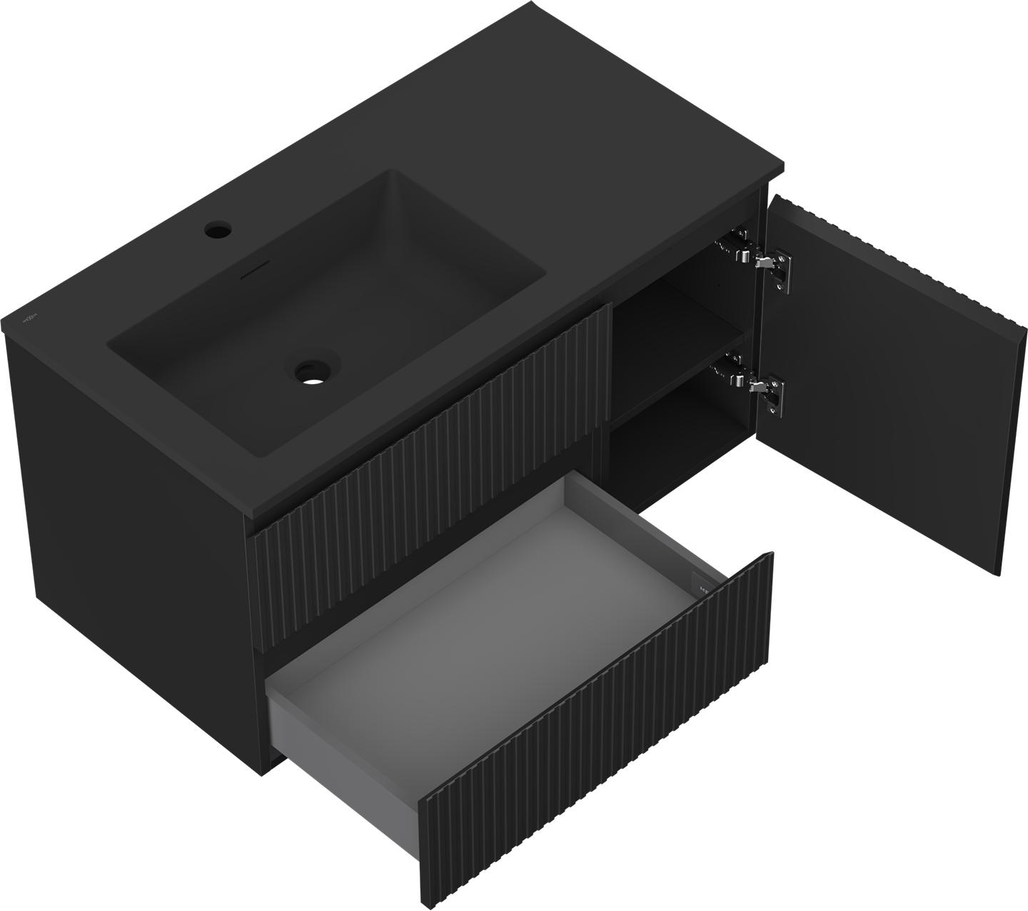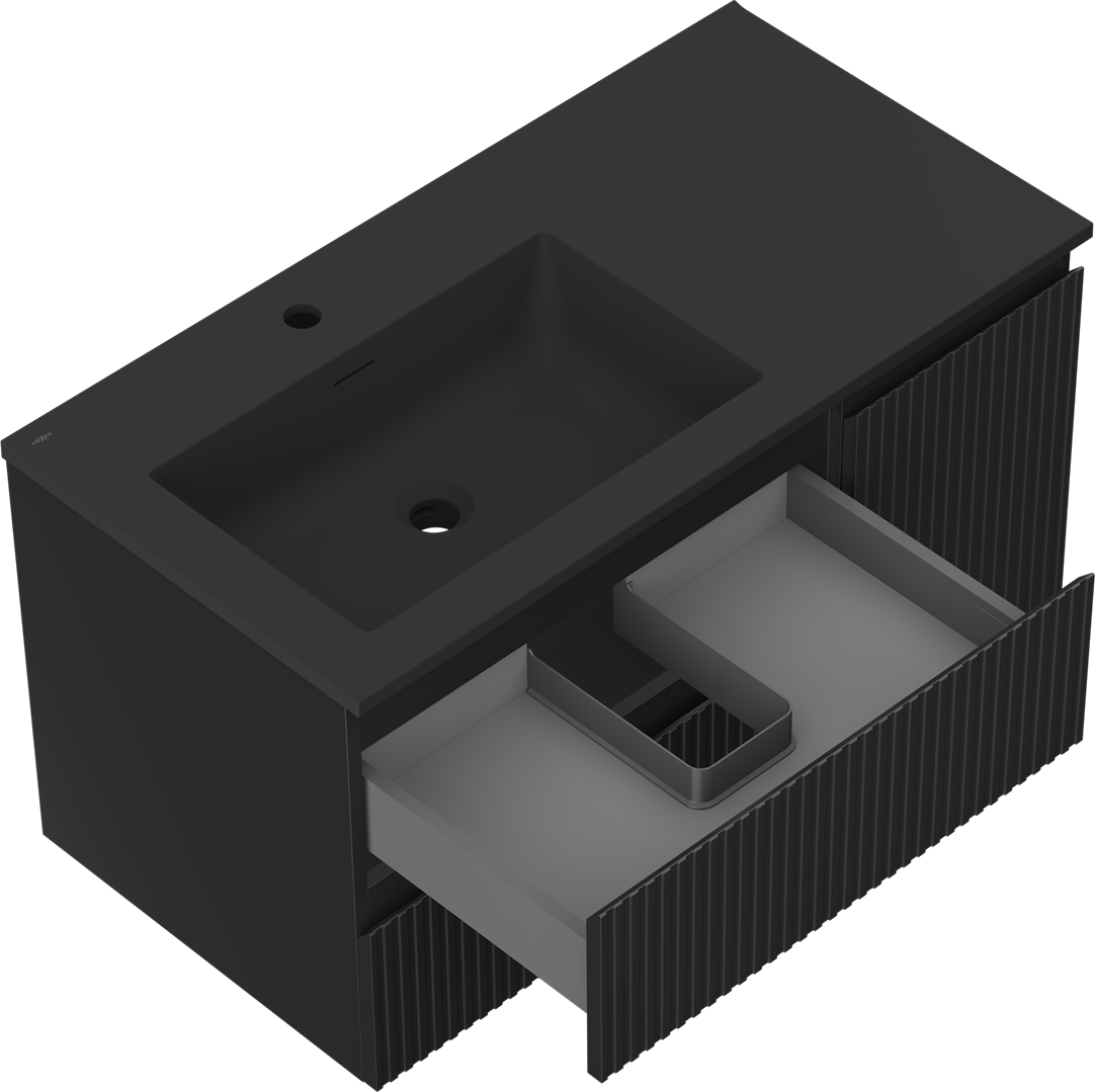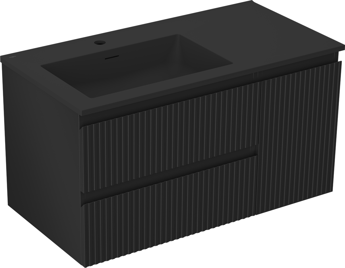 Mexen Rivel 90 cm vannas istabas skapītis ar kreiso izlietni Otis, 2S, 1D, rievots, melns matēts - 91A23-09047-3-BBFFF71-W18L71