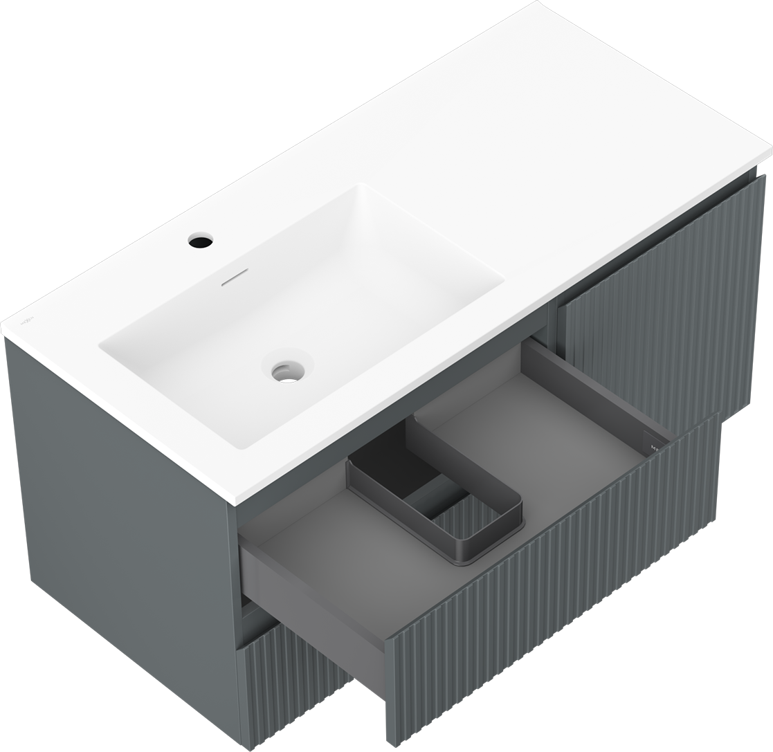 Izgriezums atvilktnē ir veidots tā, lai tajā varētu ietilpt sifons, kas ir nepieciešams izlietņu uzstādīšanā. Pateicoties tam, mēbele var tikt pilnībā funkcionāli uzstādīta, neatstājot ievērojamu vietu atvilktnē instalācijai.