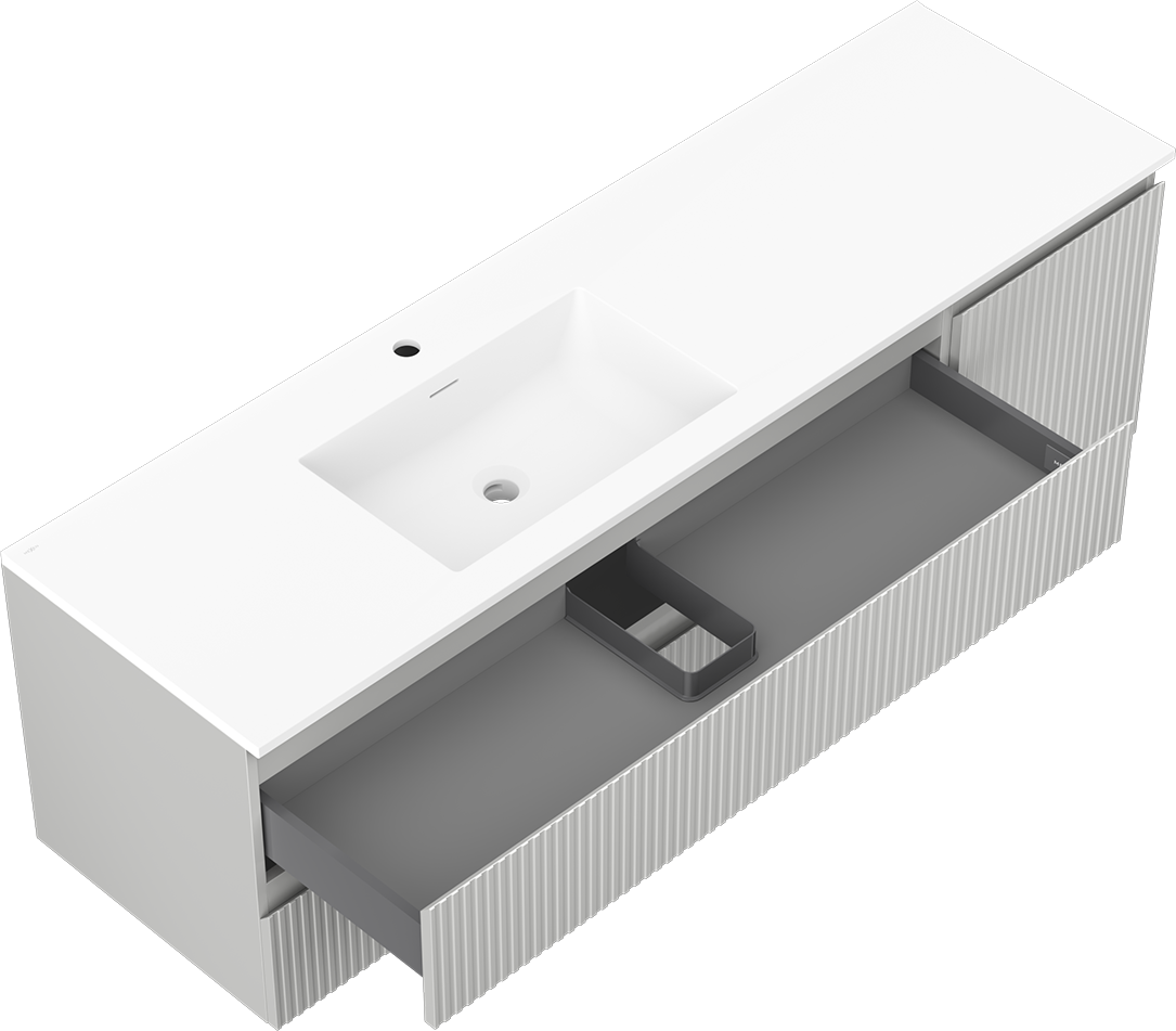 Izgriezums atvilktnē ir veidots tā, lai tajā varētu ietilpt sifons, kas ir nepieciešams izlietņu uzstādīšanā. Pateicoties tam, mēbele var tikt pilnībā funkcionāli uzstādīta, neatstājot ievērojamu vietu atvilktnē instalācijai.