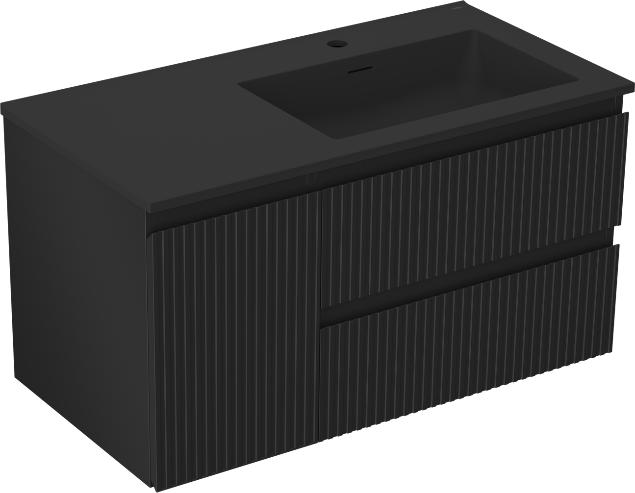 Mexen Rivel vannas istabas skapītis 90 cm ar izlietni Otis labais, 2S, 1D, rievots, melns mats - 91A23-09047-3-BBFFF71-W18P71