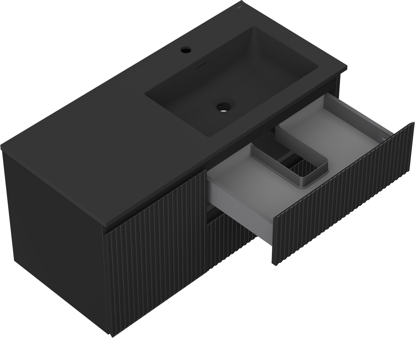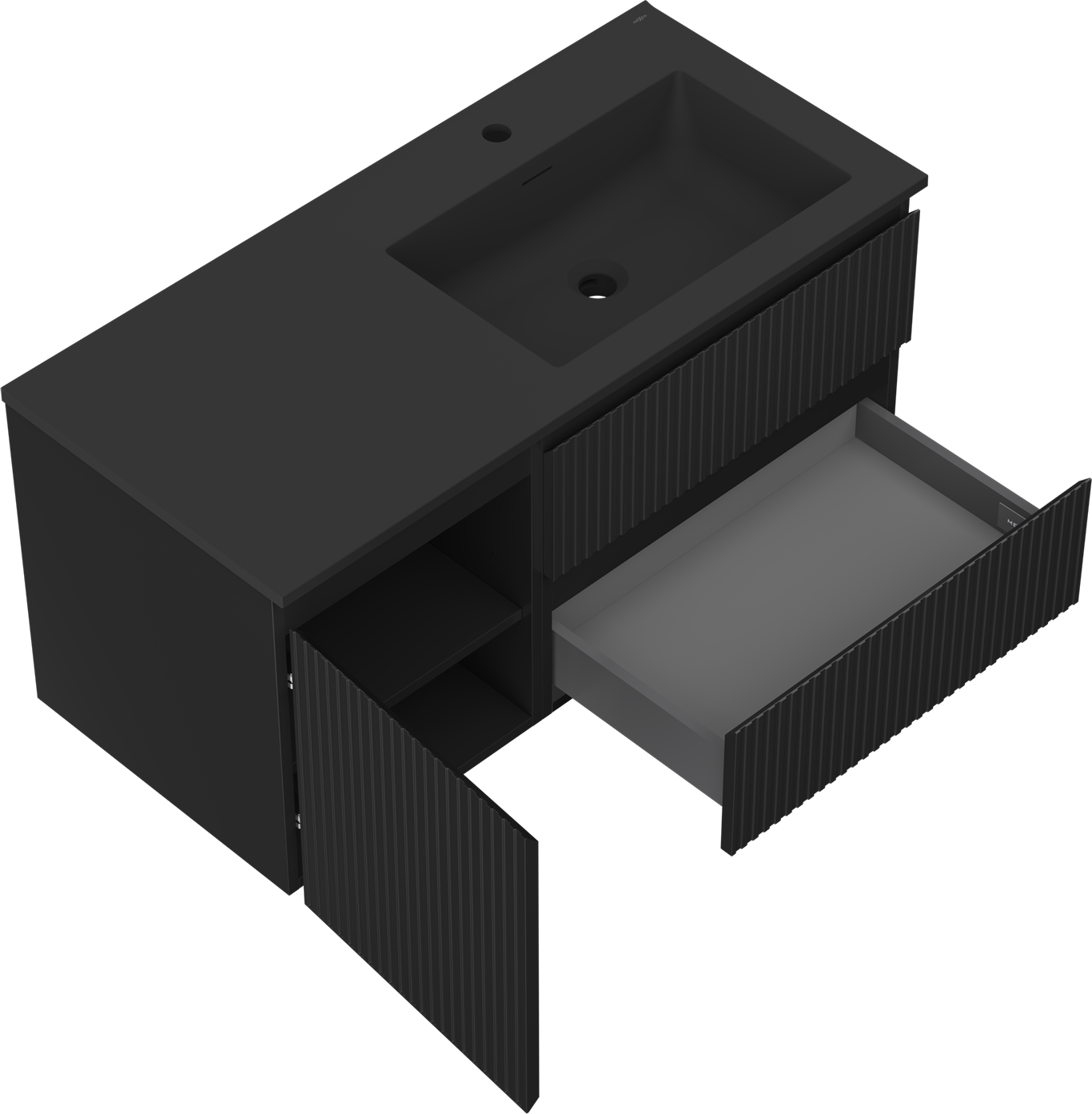 Mexen Rivel vannas istabas skapītis 100 cm ar izlietni Otis labo, 2S, 1D, rievots, melns mats - 91A23-10047-3-BBFFF71-W18P71