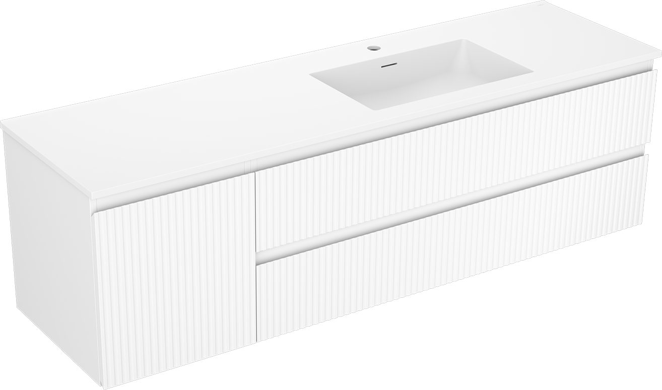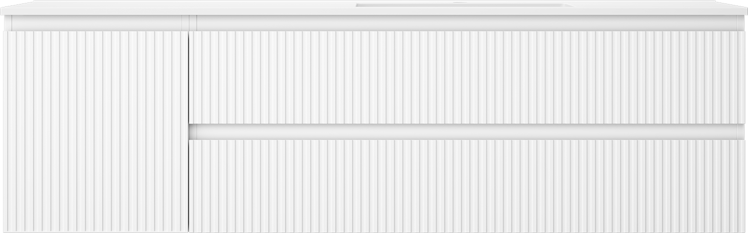 Mexen Rivel vannas istabas skapis 160 cm ar izlietni Otis pa labi, 2S, 1D, rievots, balts matēts - 91A23-16047-3-BBFFF01-W18P01