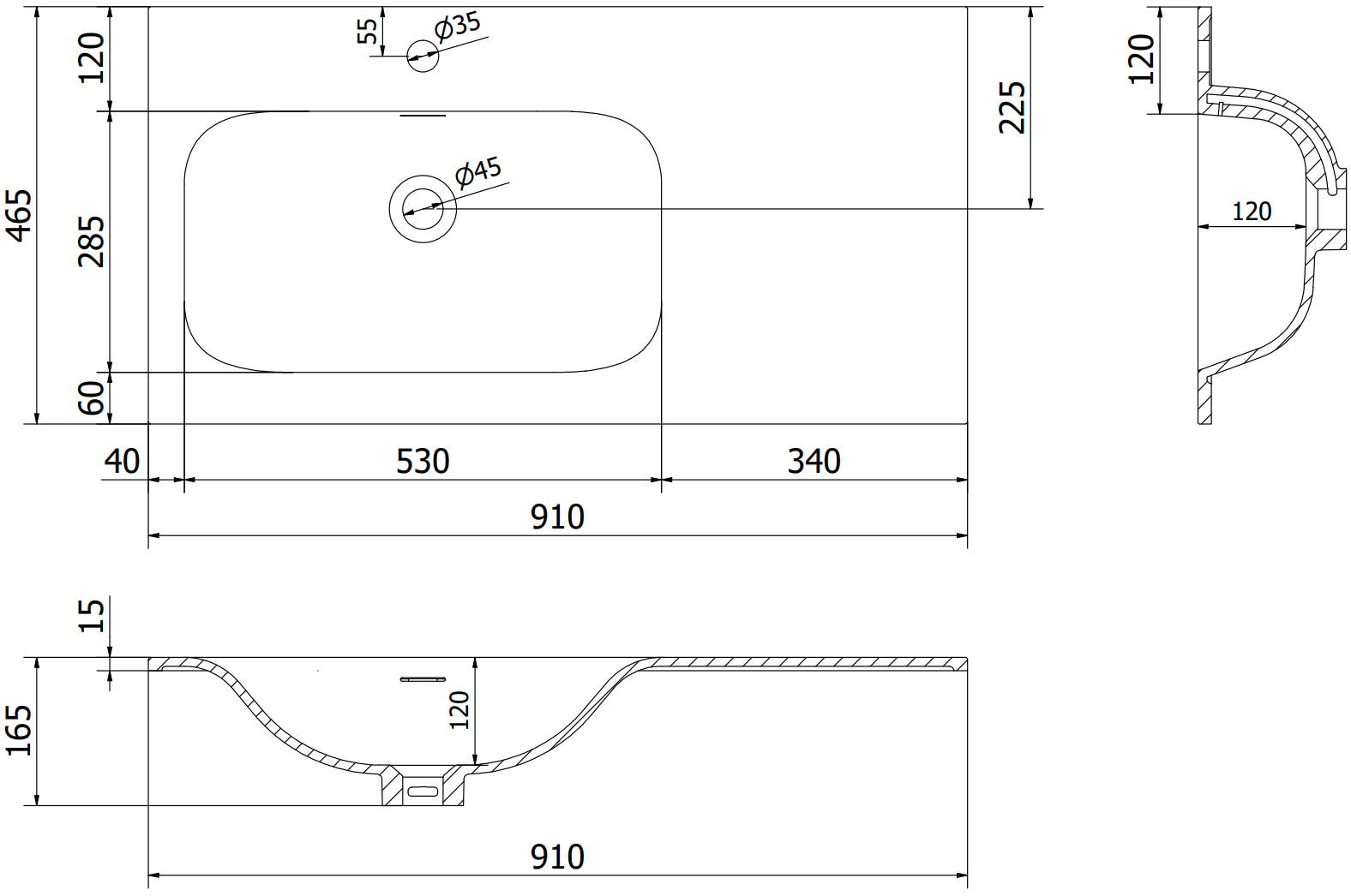 Izgriezums atvilktnē ir veidots tā, lai tajā varētu ietilpt sifons, kas ir nepieciešams izlietņu uzstādīšanā. Pateicoties tam, mēbele var tikt pilnībā funkcionāli uzstādīta, neatstājot ievērojamu vietu atvilktnē instalācijai.