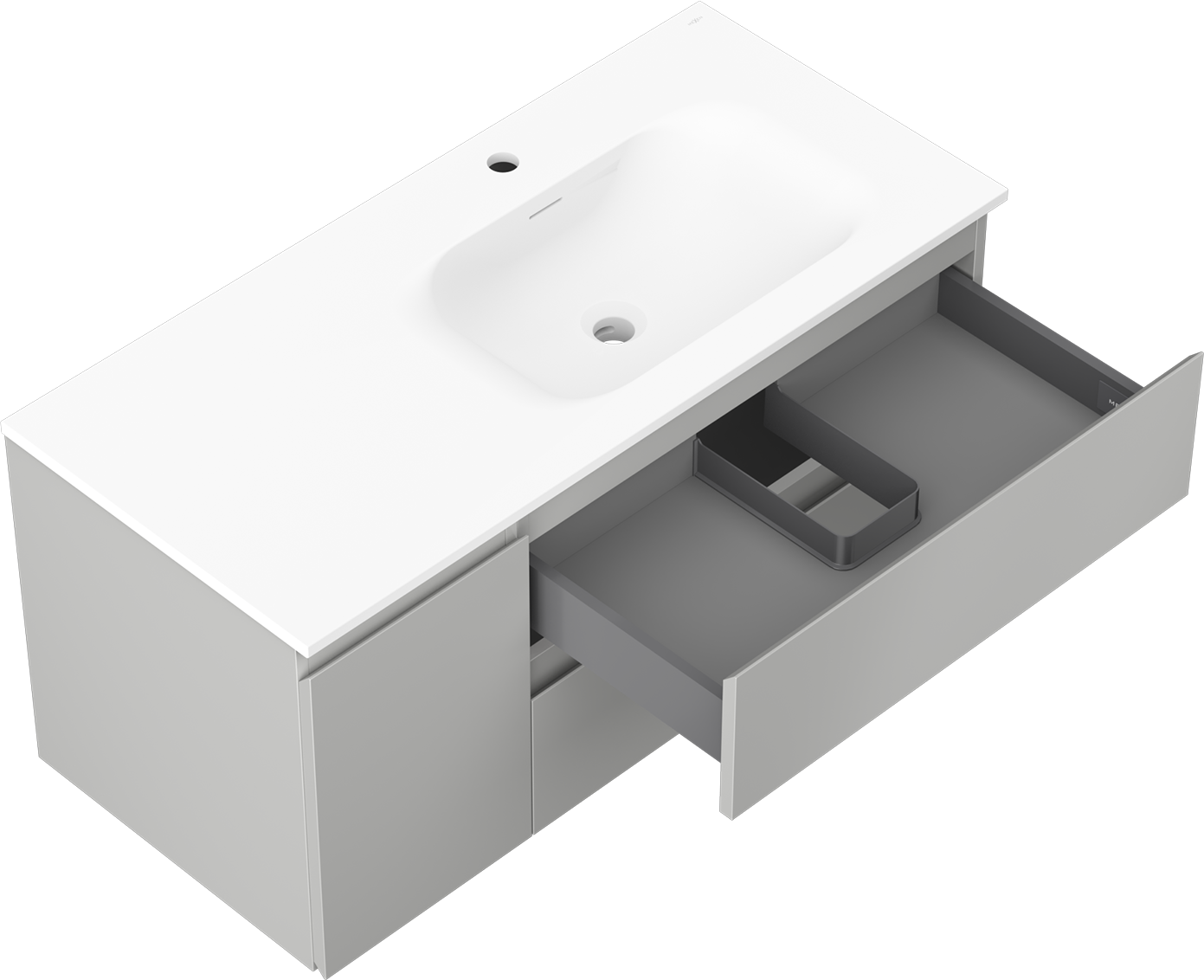 Izgriezums atvilktnē ir veidots tā, lai tajā varētu ietilpt sifons, kas ir nepieciešams izlietņu uzstādīšanā. Pateicoties tam, mēbele var tikt pilnībā funkcionāli uzstādīta, neatstājot ievērojamu vietu atvilktnē instalācijai.